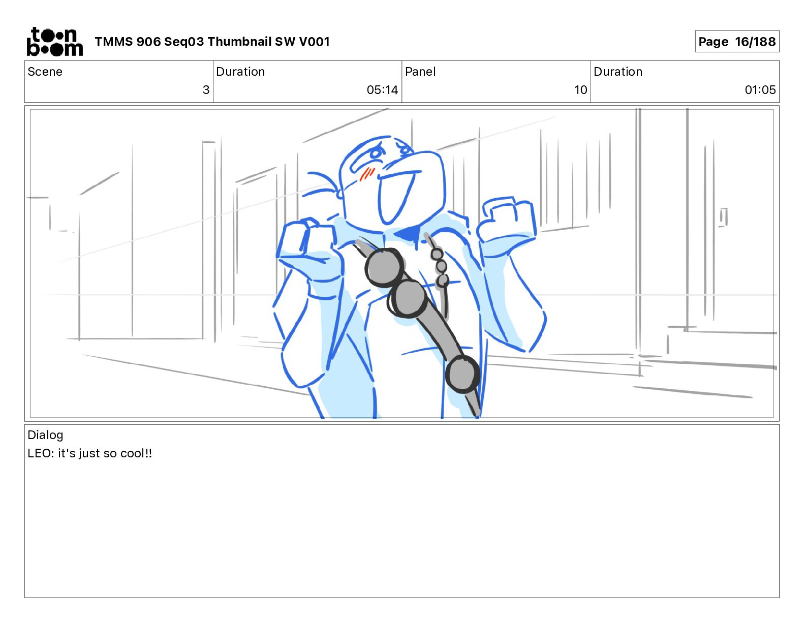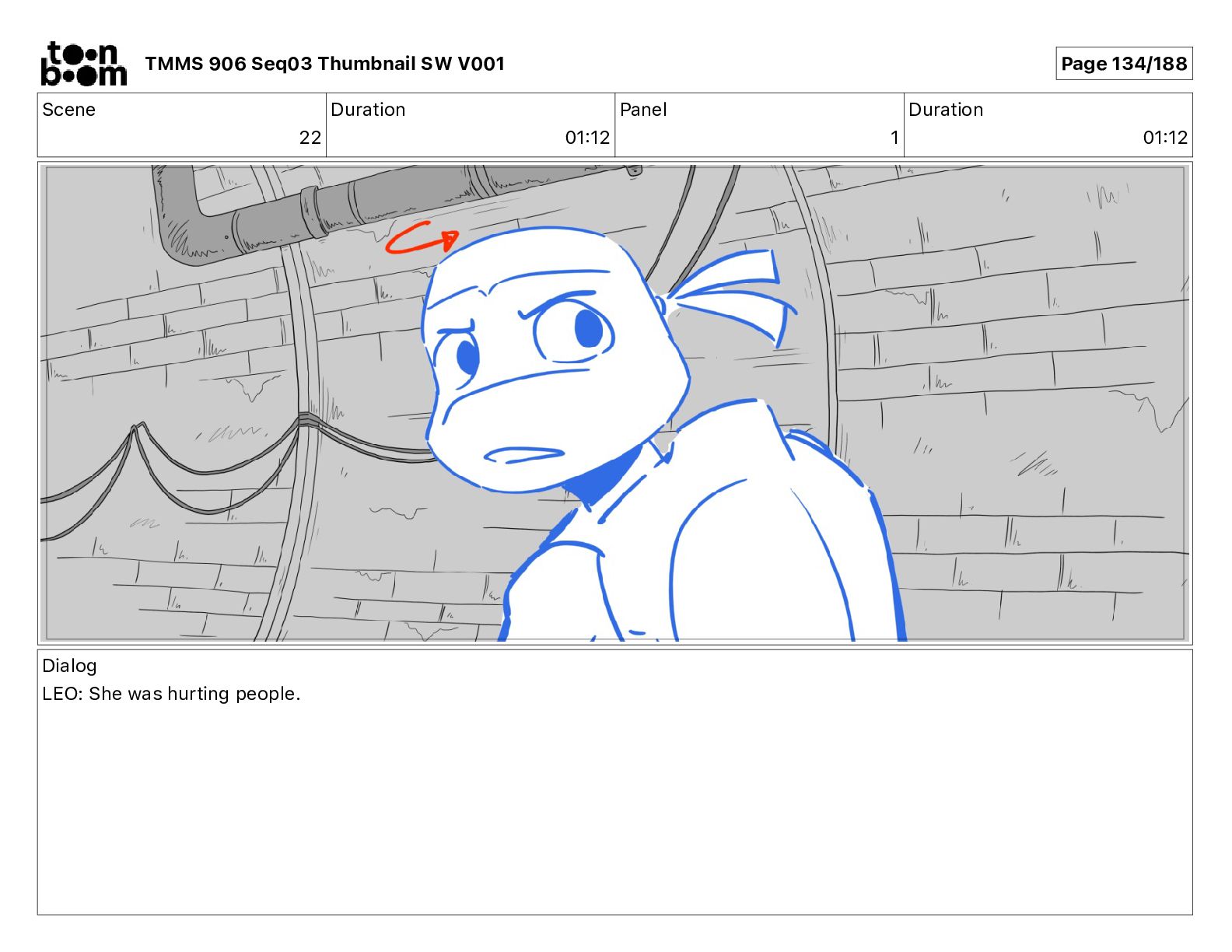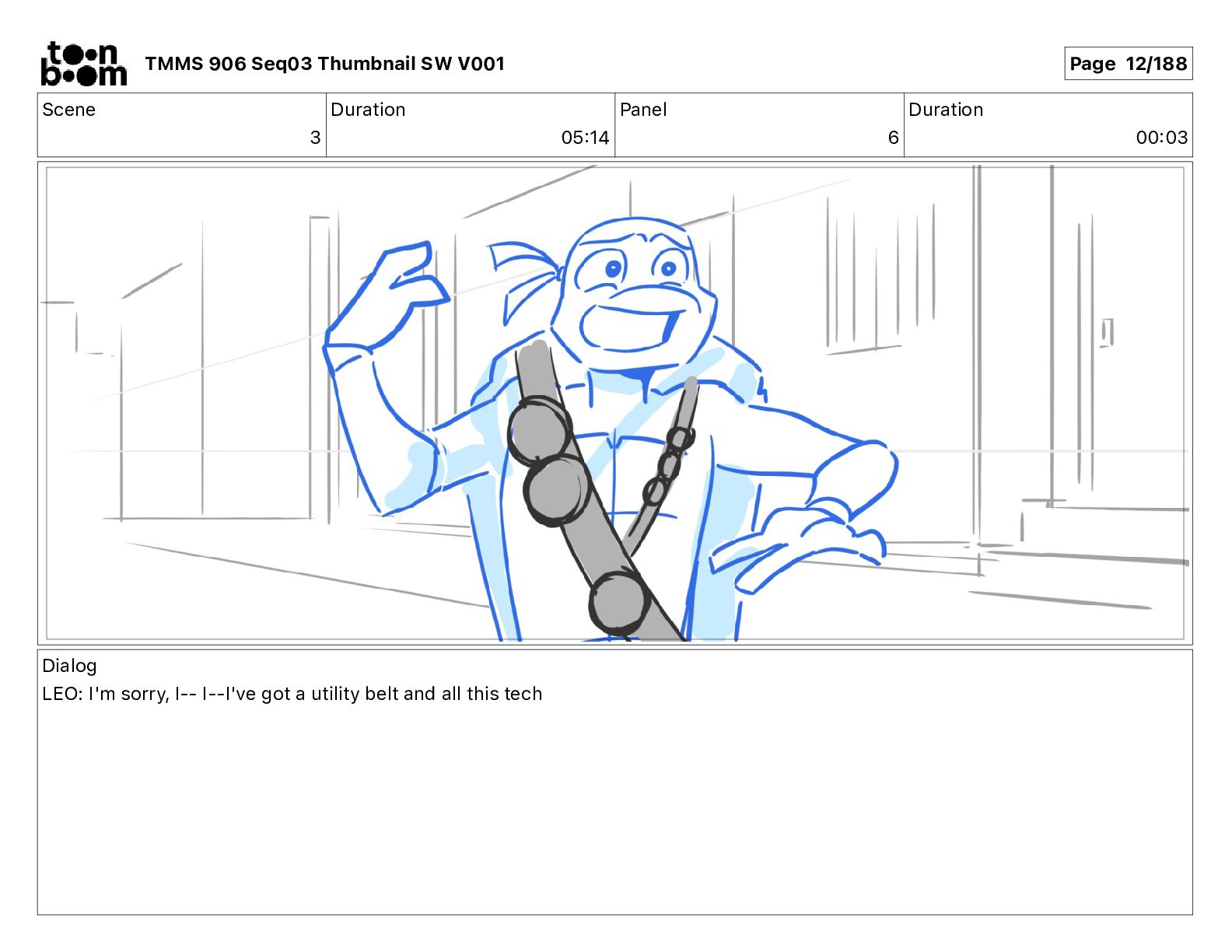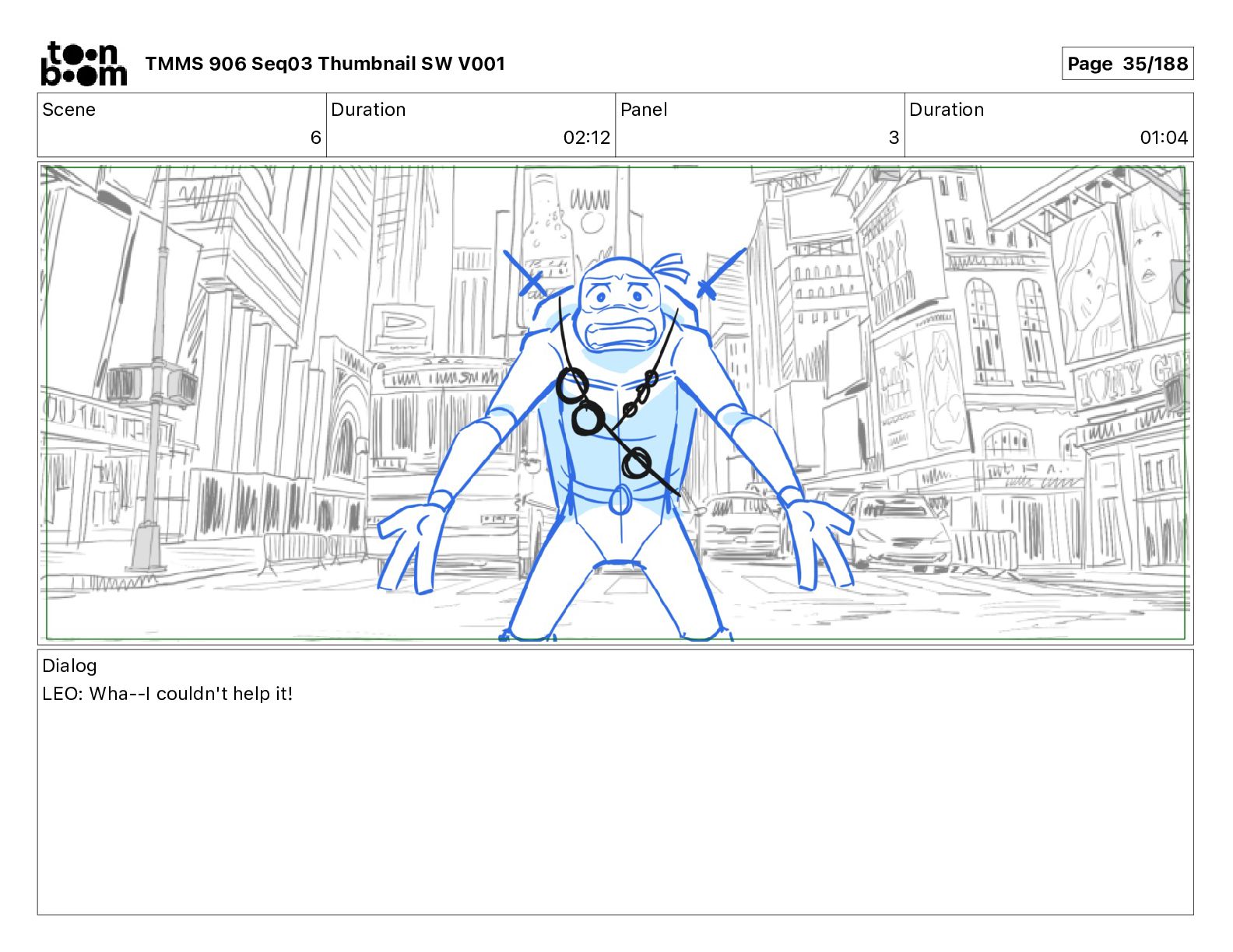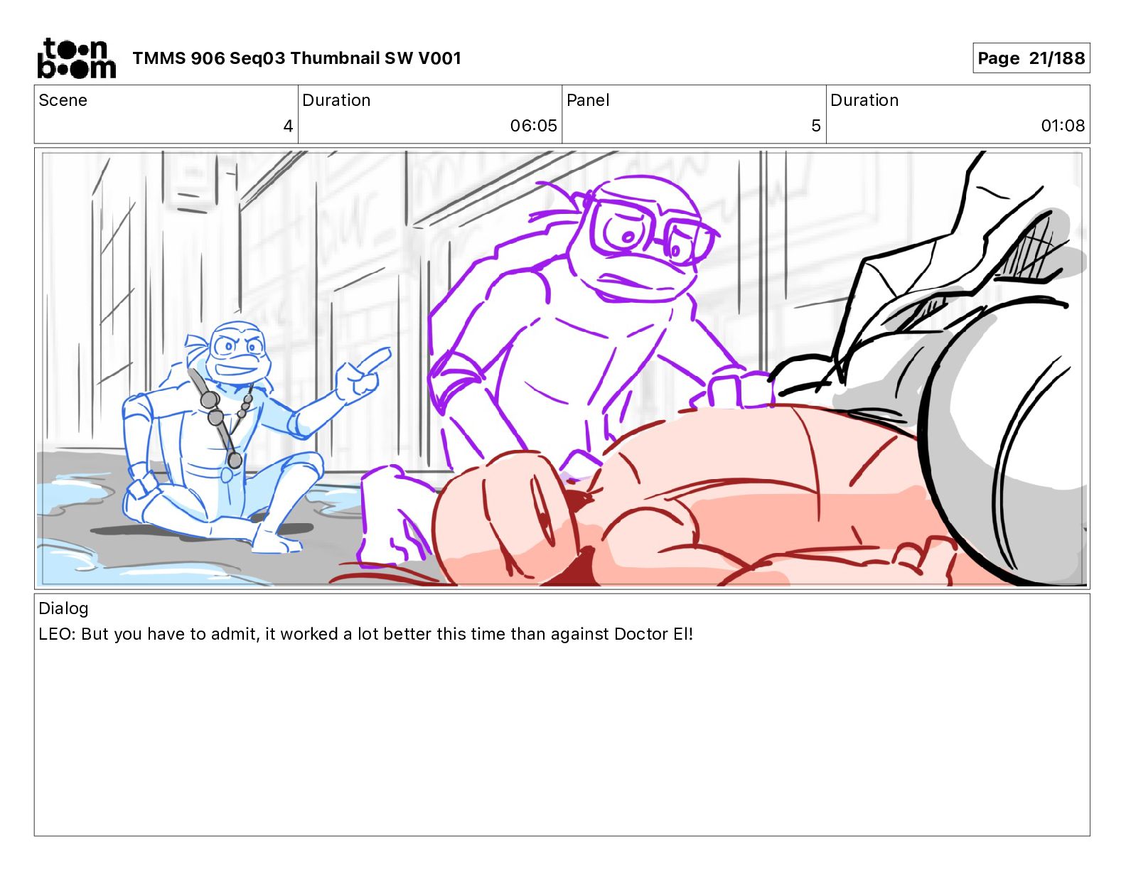 Dialog LEO (O.S.): I said I was sorry! TMMS 906 Seq03 Thumbnail SW V001 Page 158/188