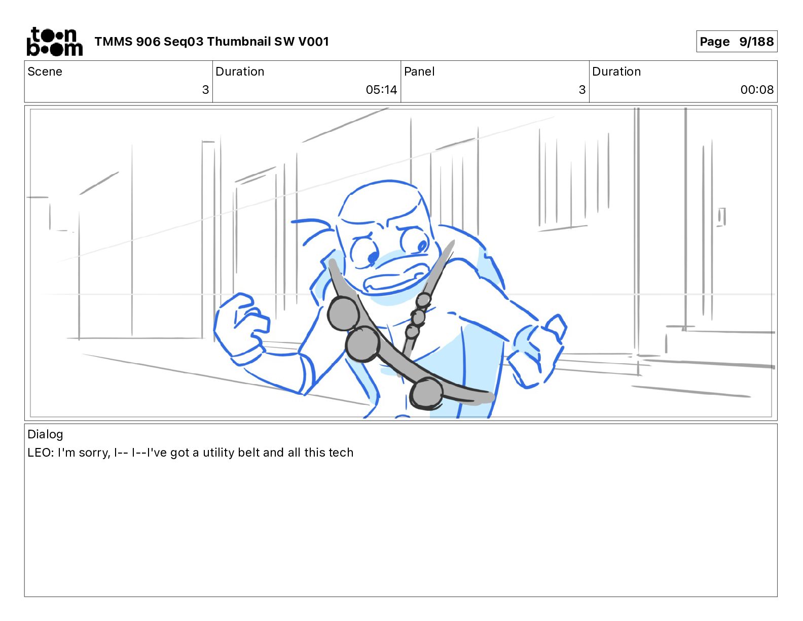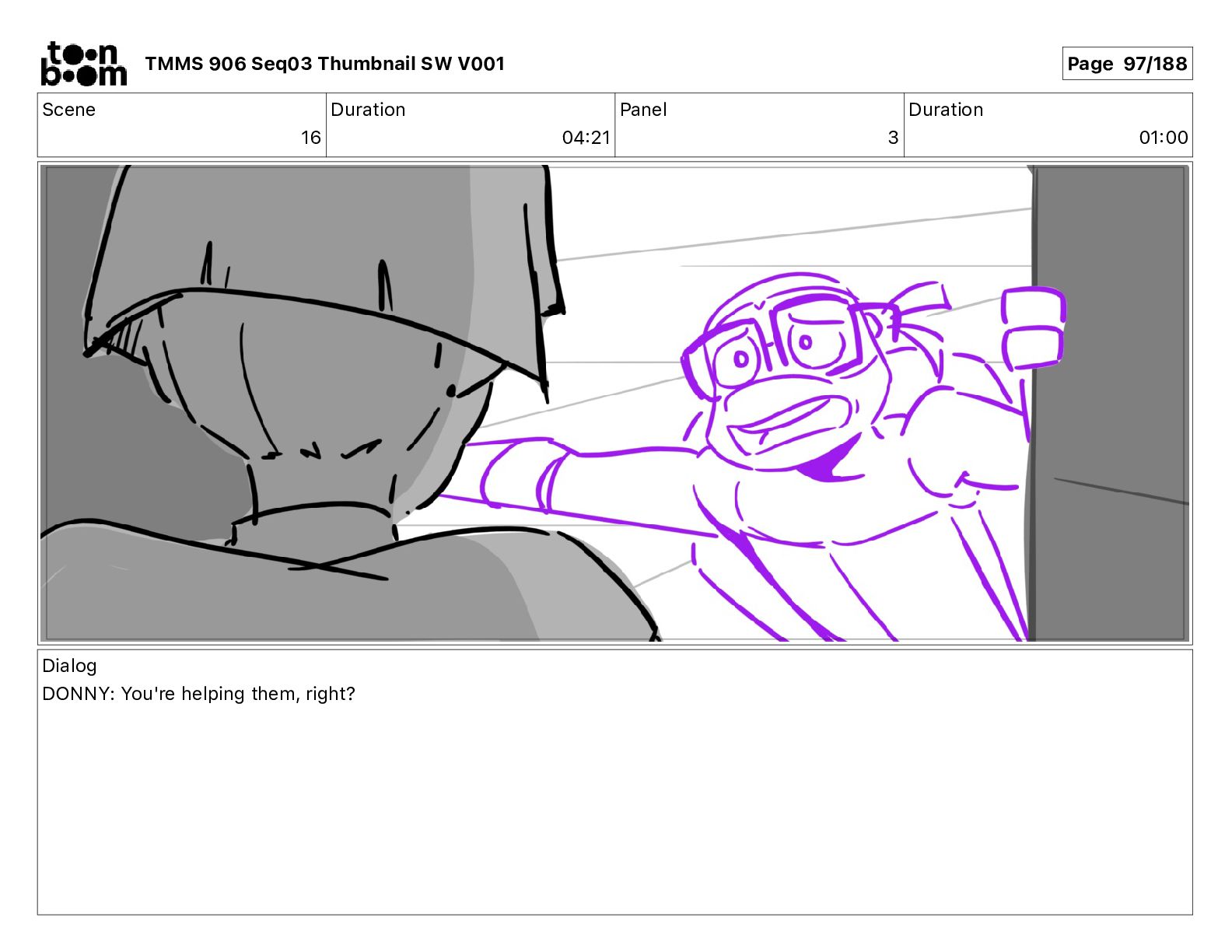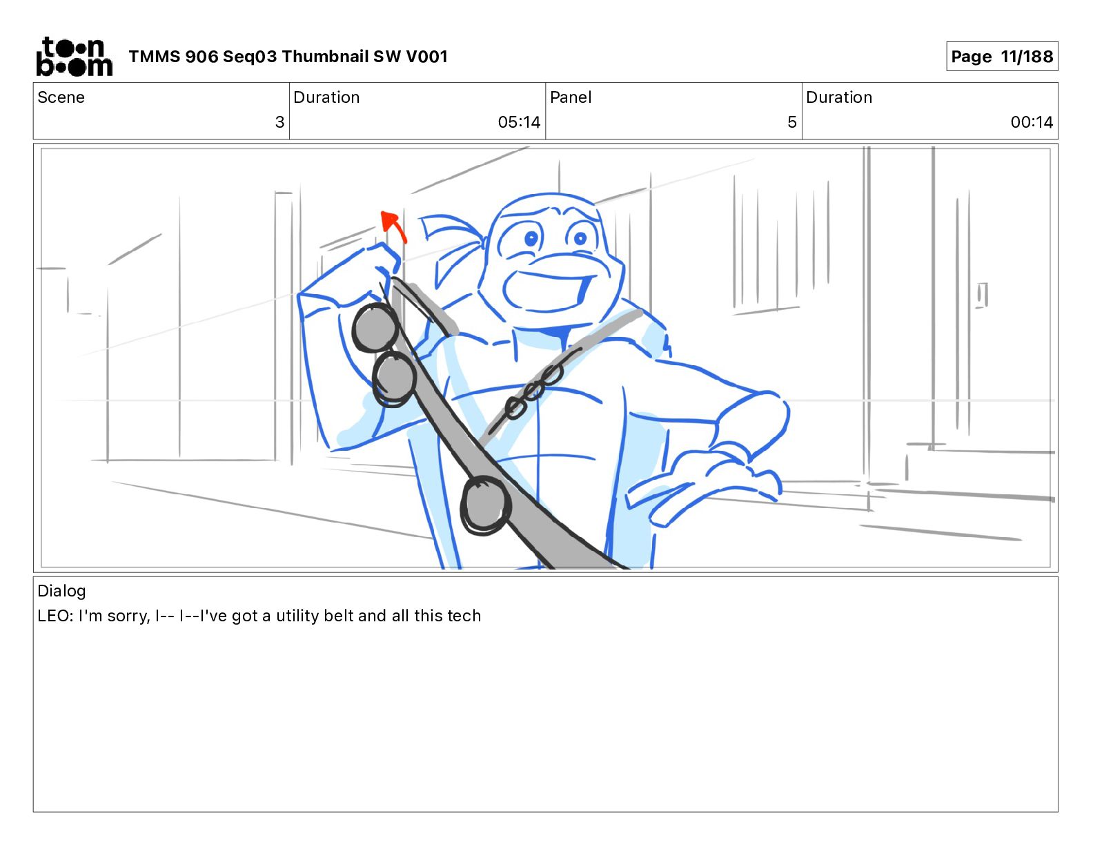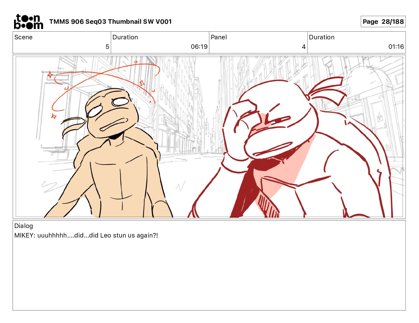 Dialog LEO (O.S.): I said I was sorry! TMMS 906 Seq03 Thumbnail SW V001 Page 158/188