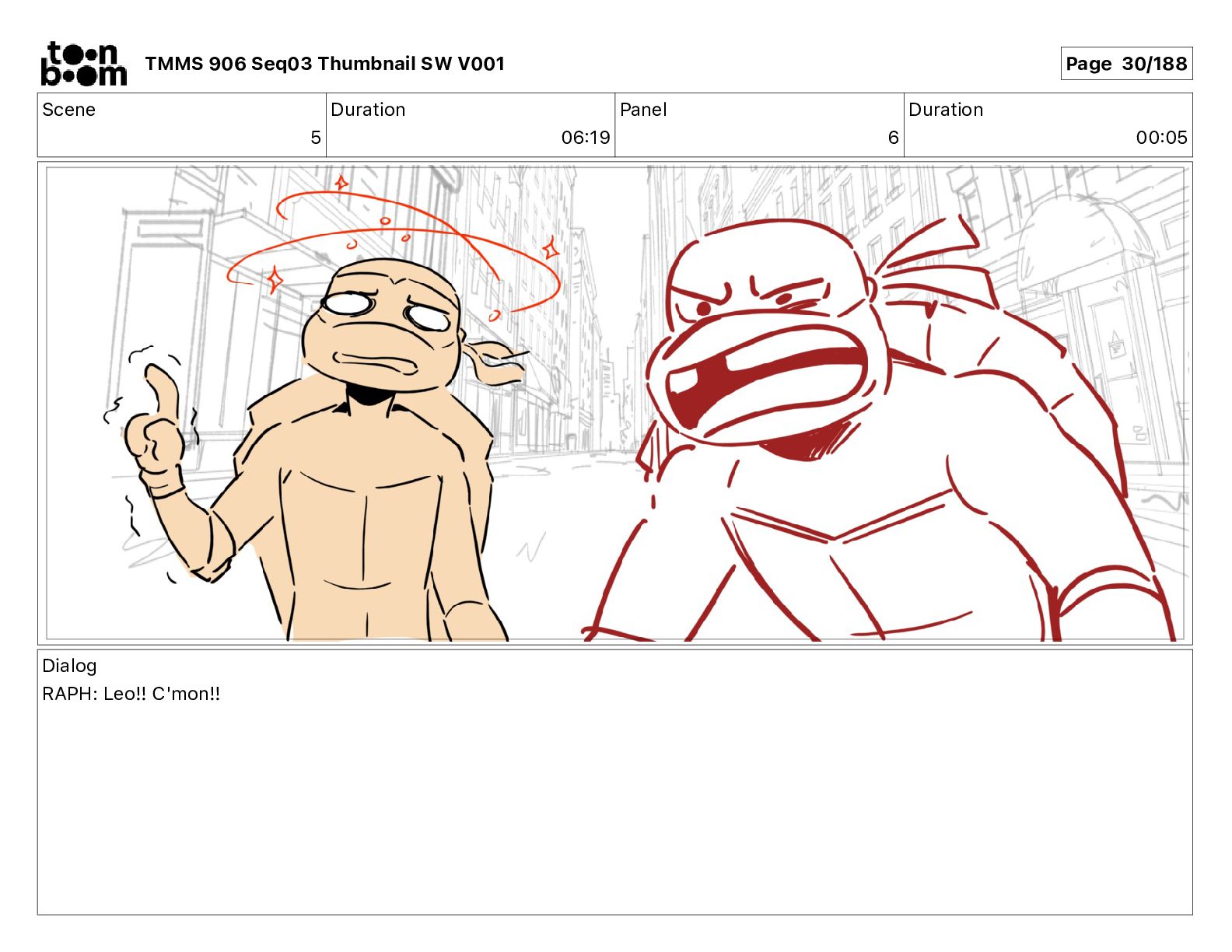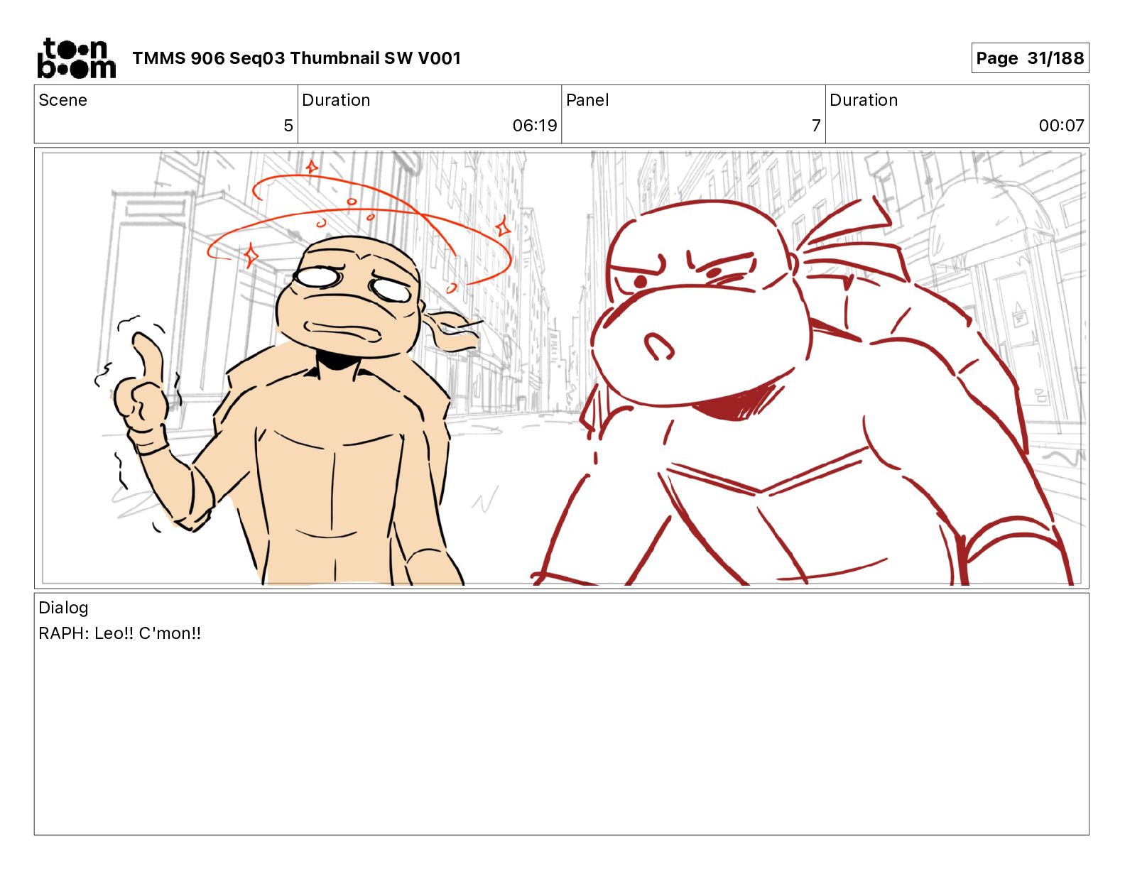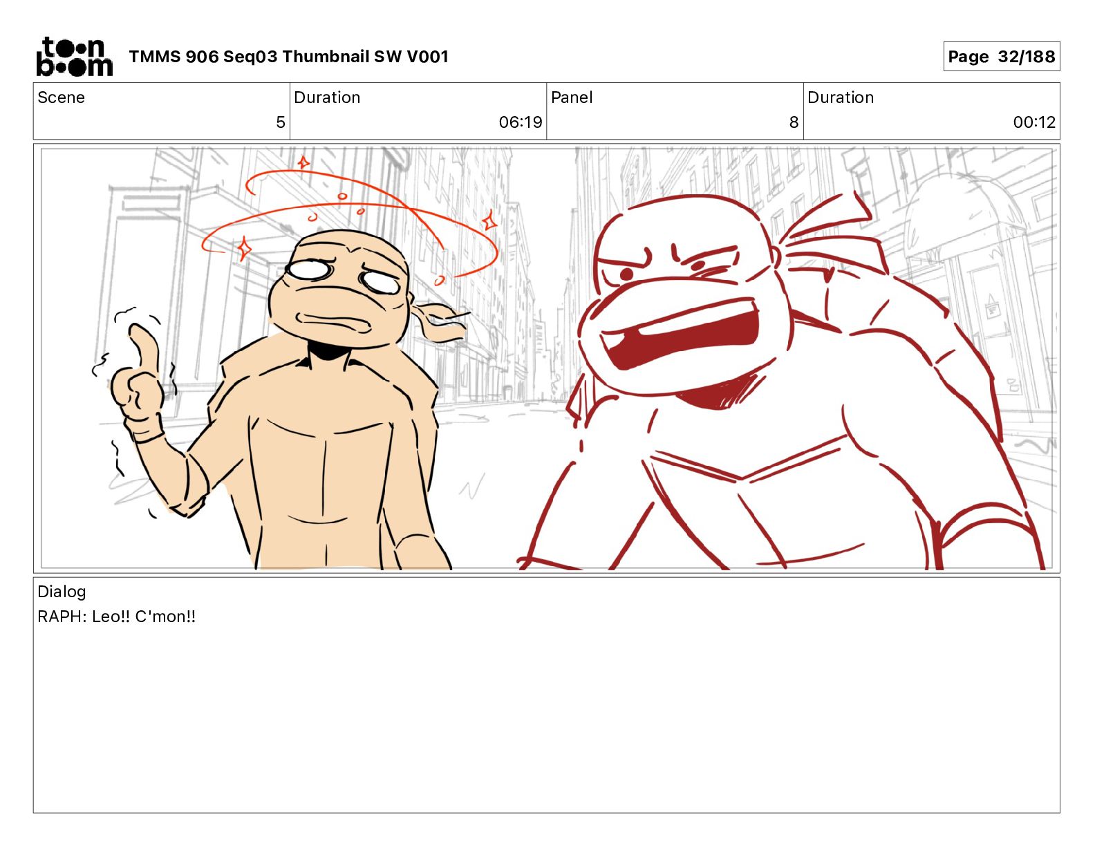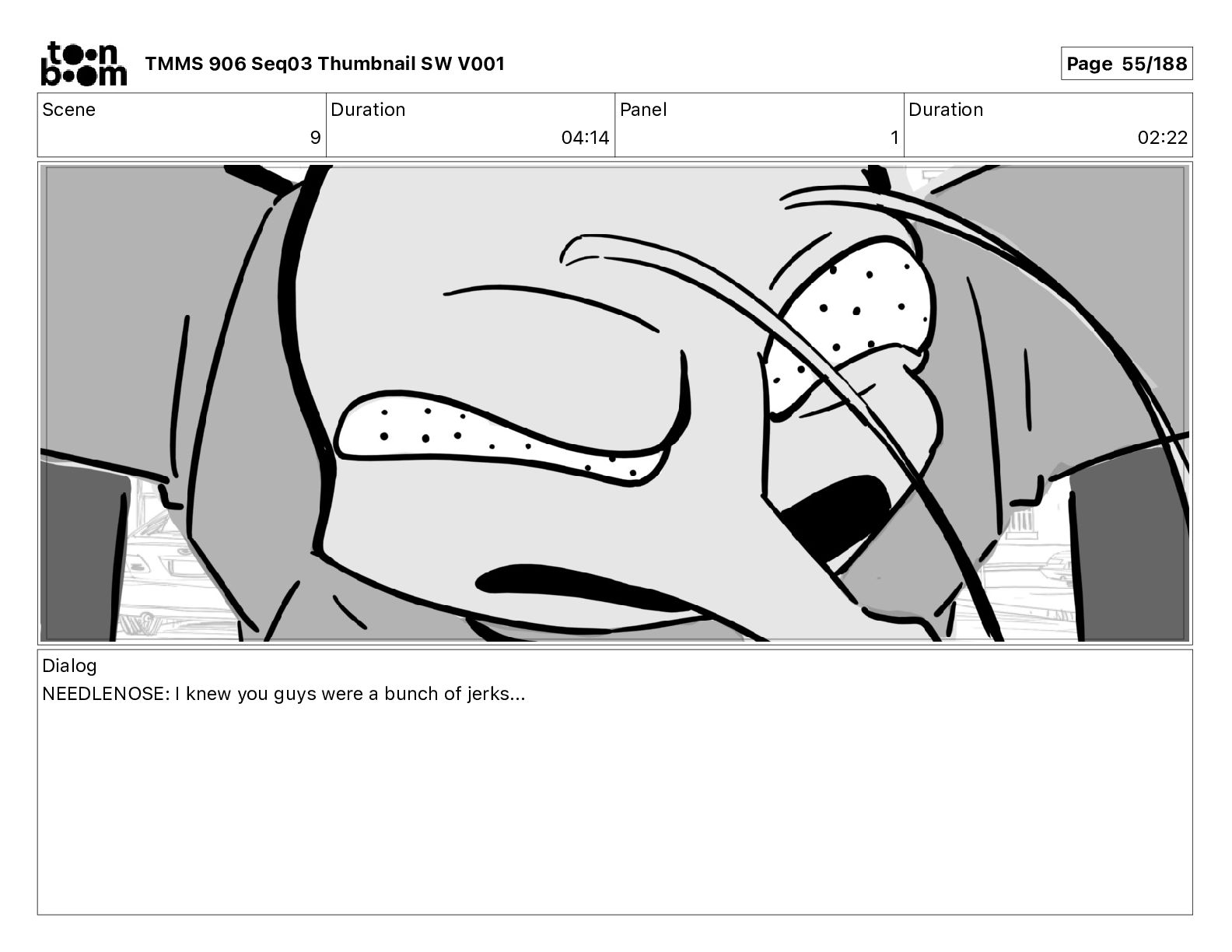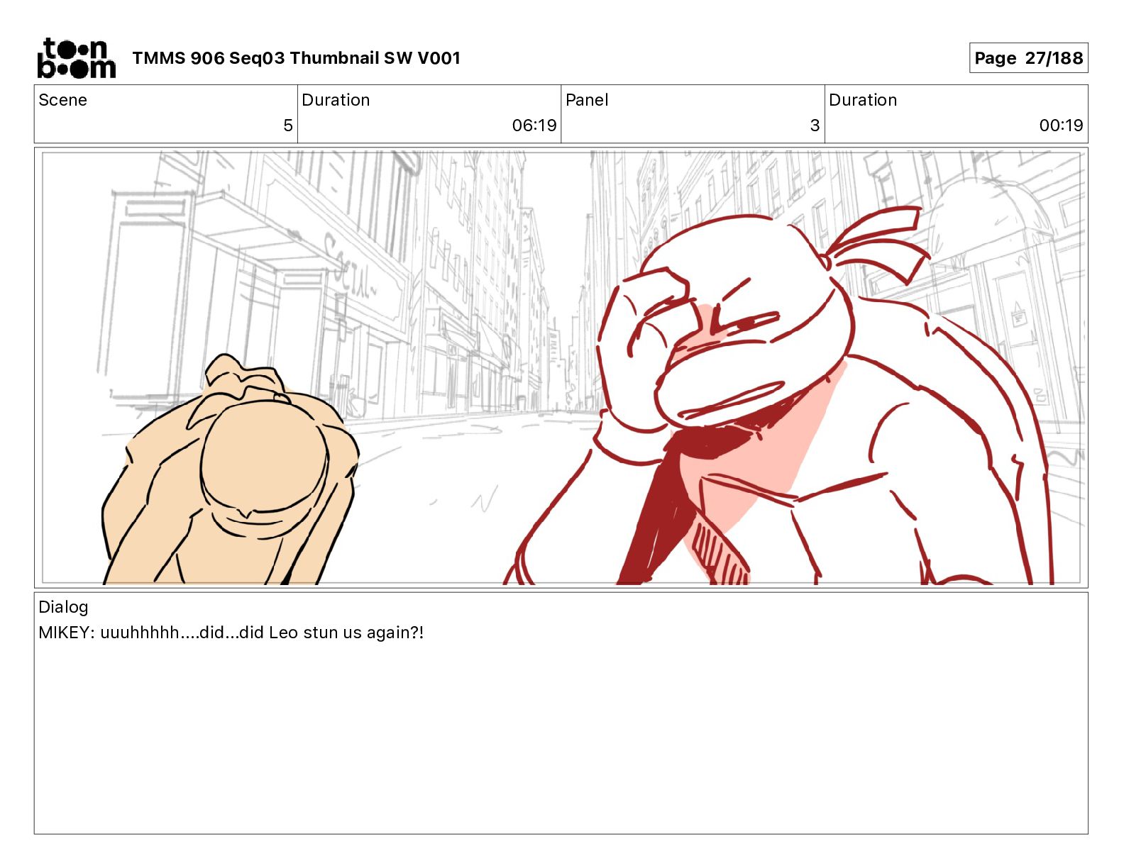 Dialog LEO (O.S.): I said I was sorry! TMMS 906 Seq03 Thumbnail SW V001 Page 158/188