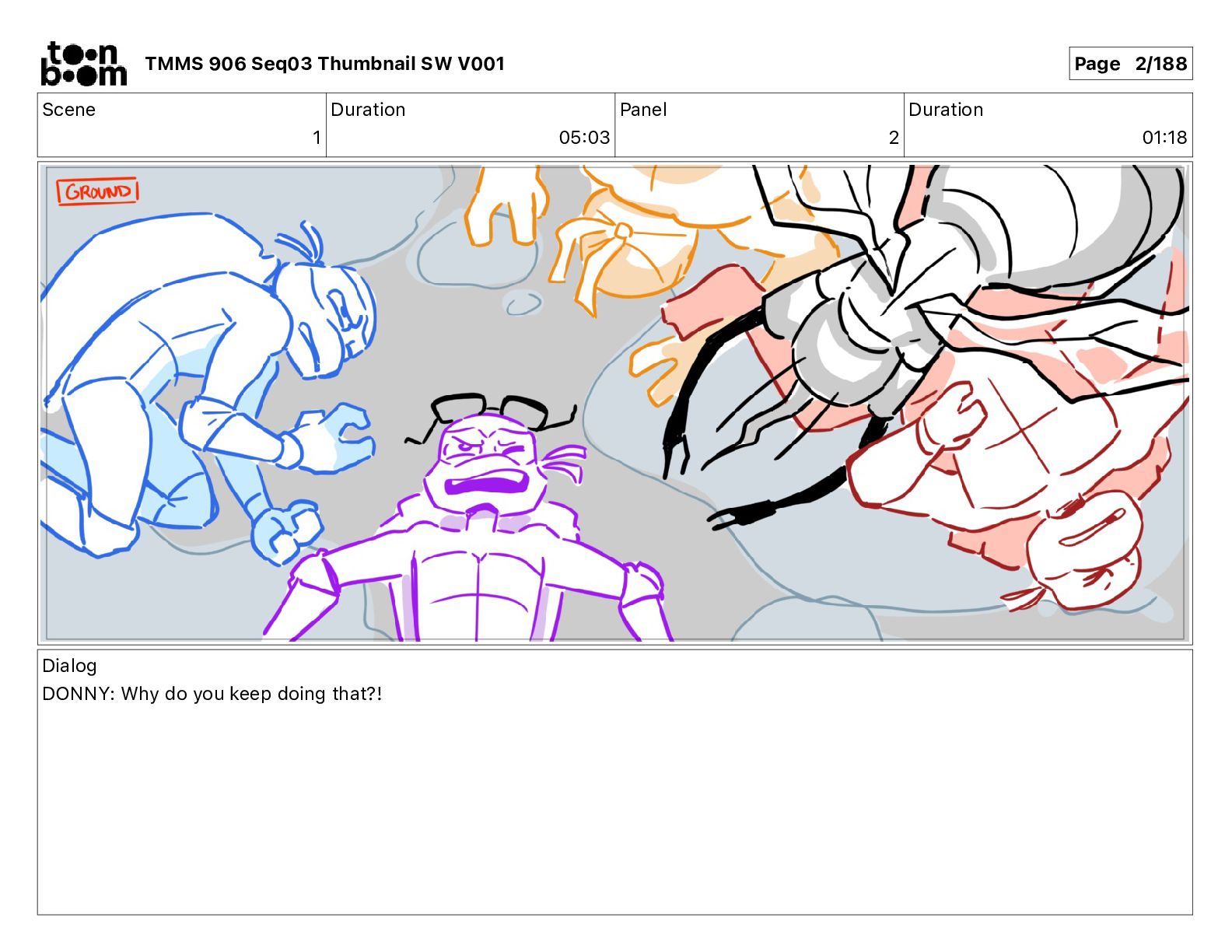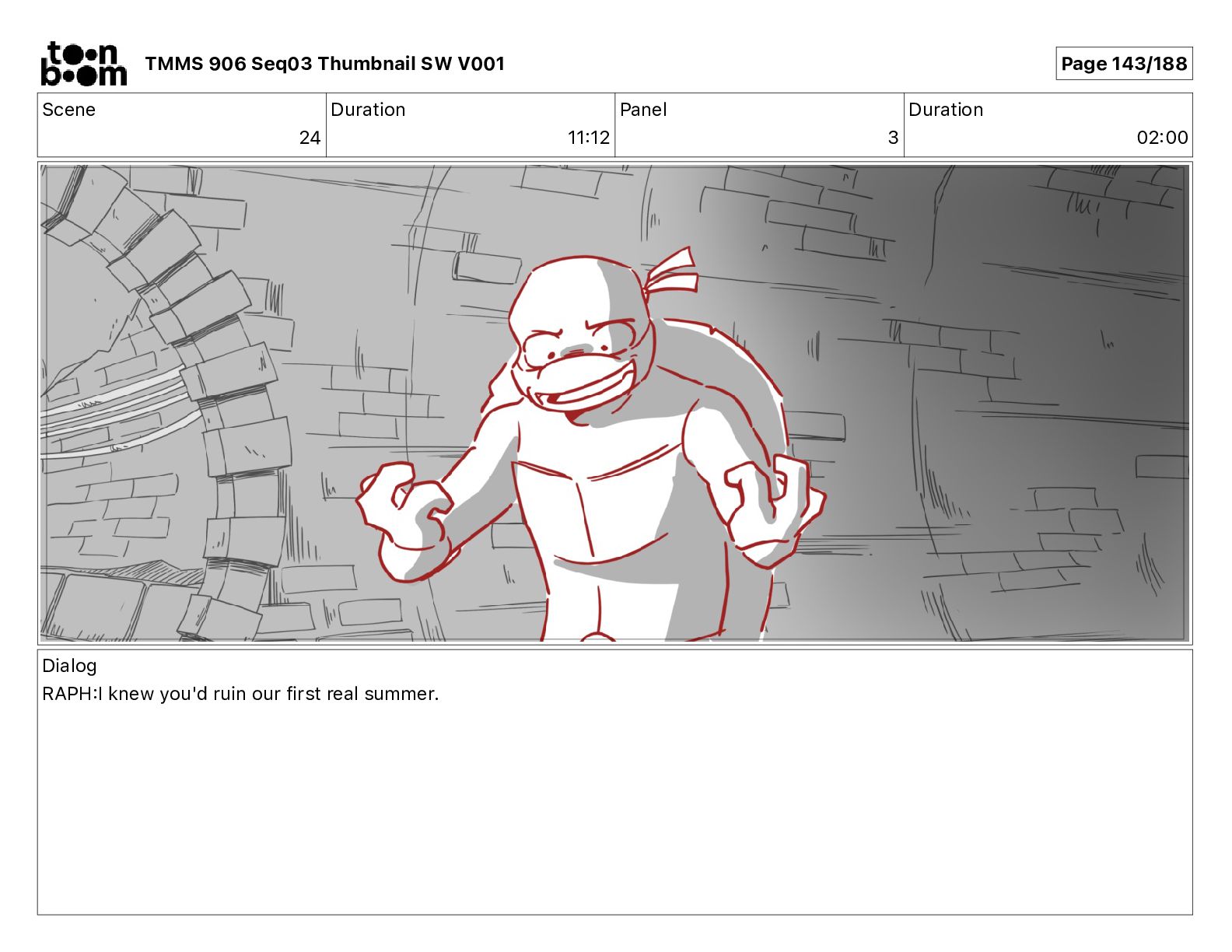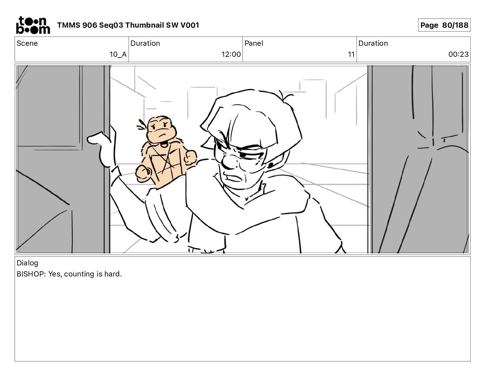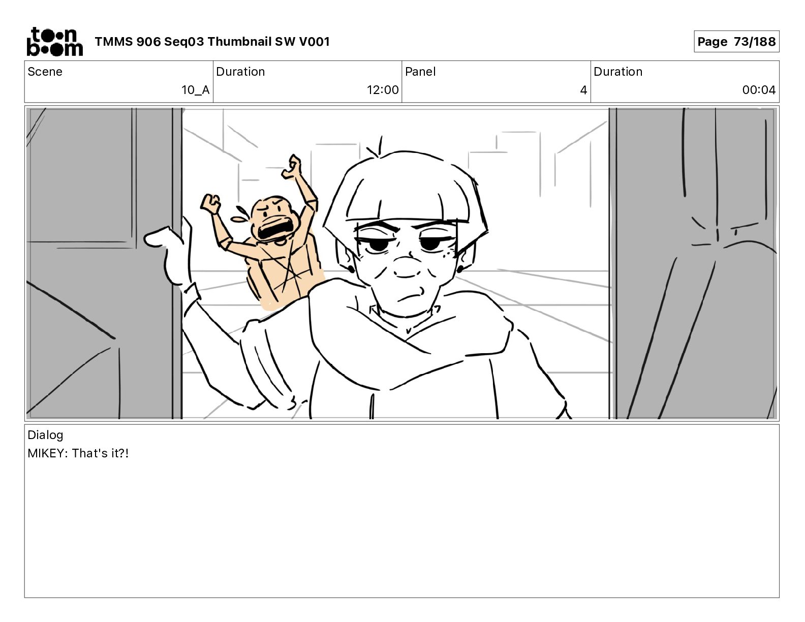 Dialog LEO (O.S.): I said I was sorry! TMMS 906 Seq03 Thumbnail SW V001 Page 158/188