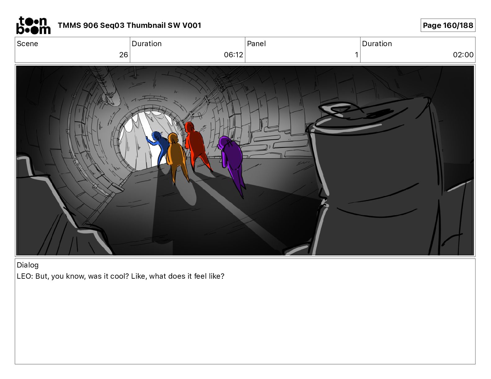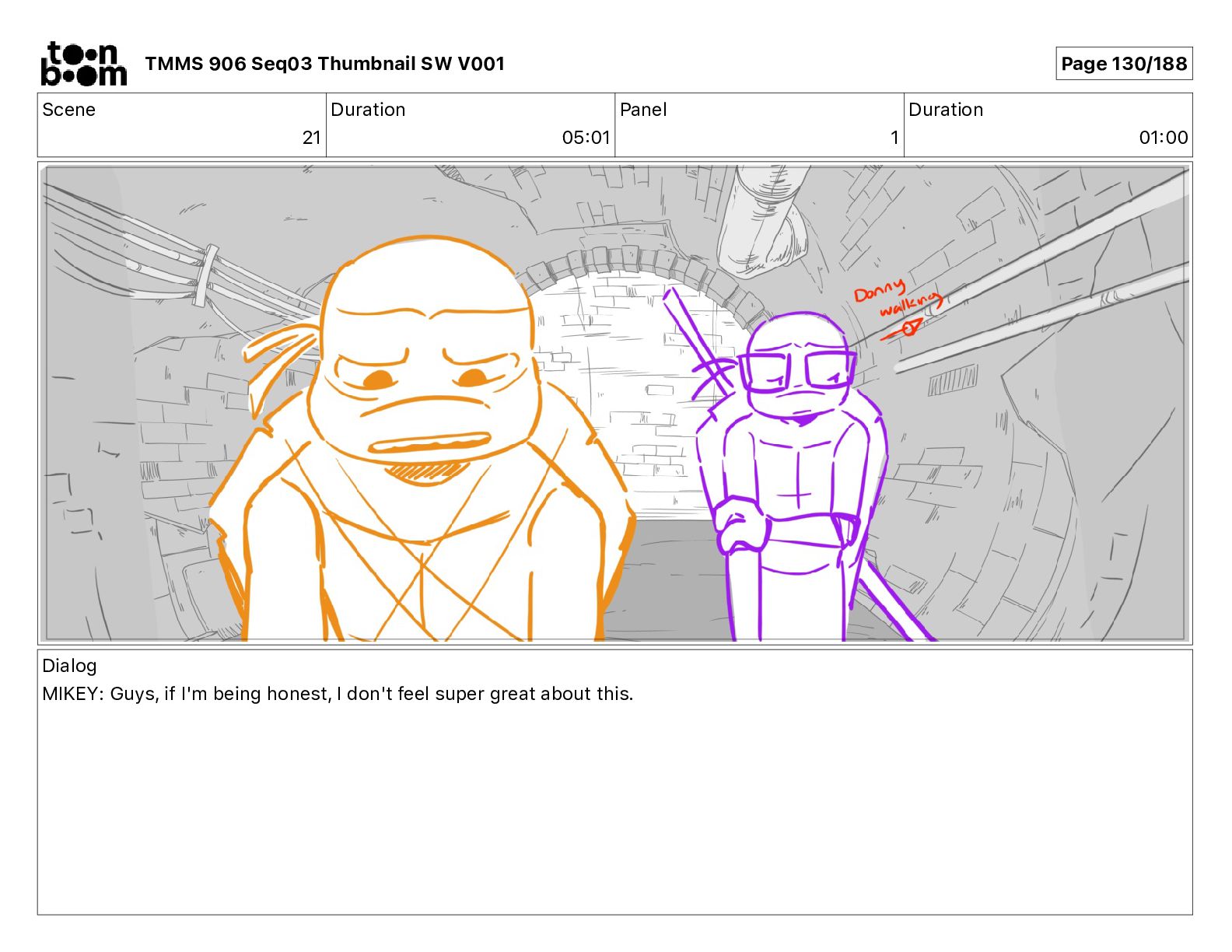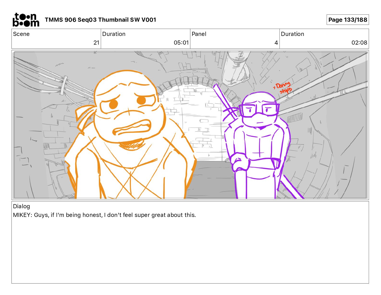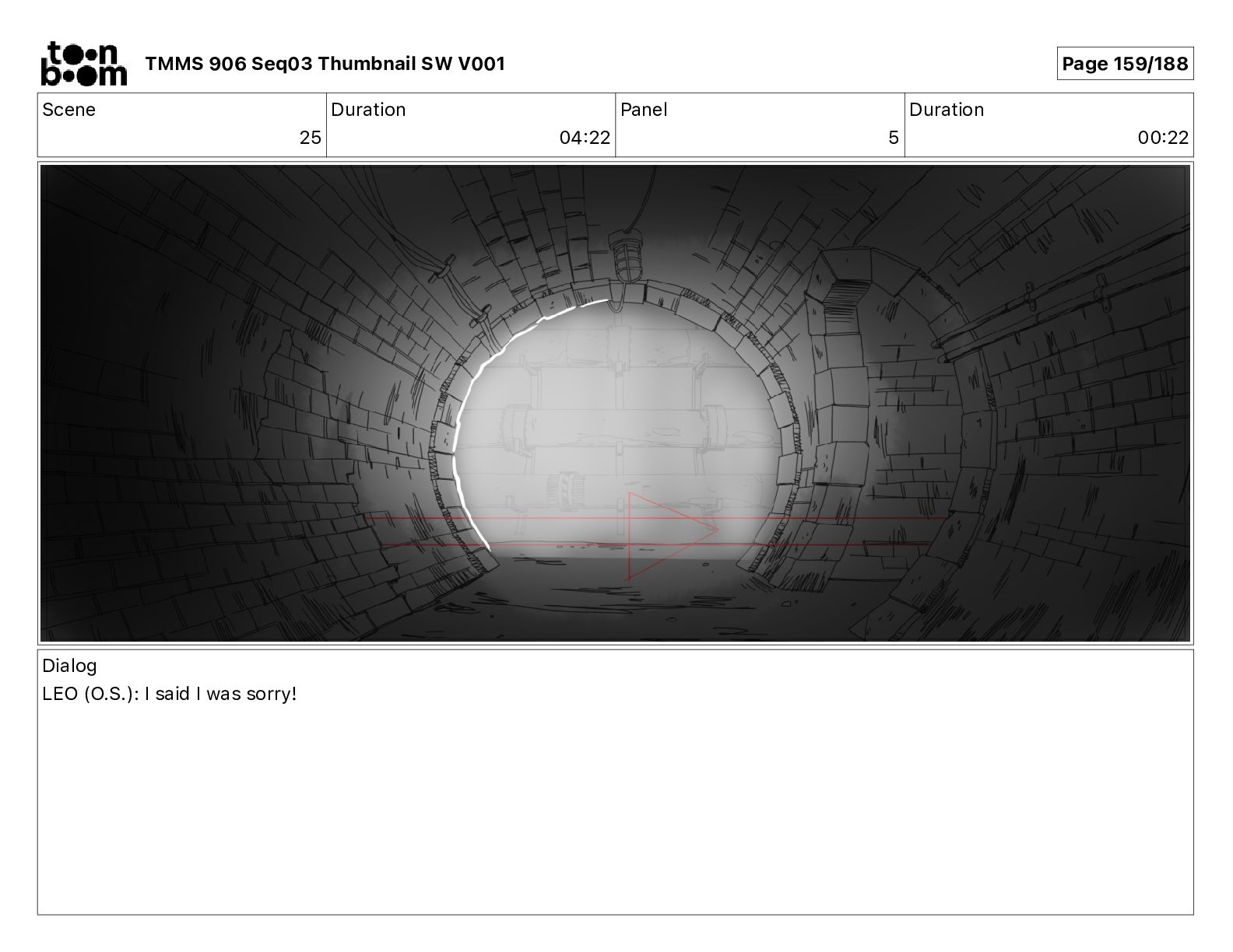Dialog LEO (O.S.): I said I was sorry! TMMS 906 Seq03 Thumbnail SW V001 Page 159/188