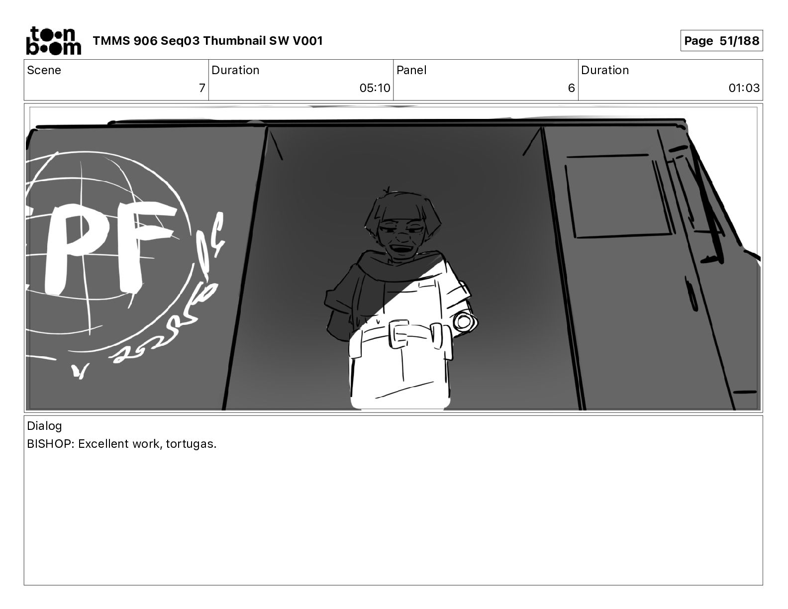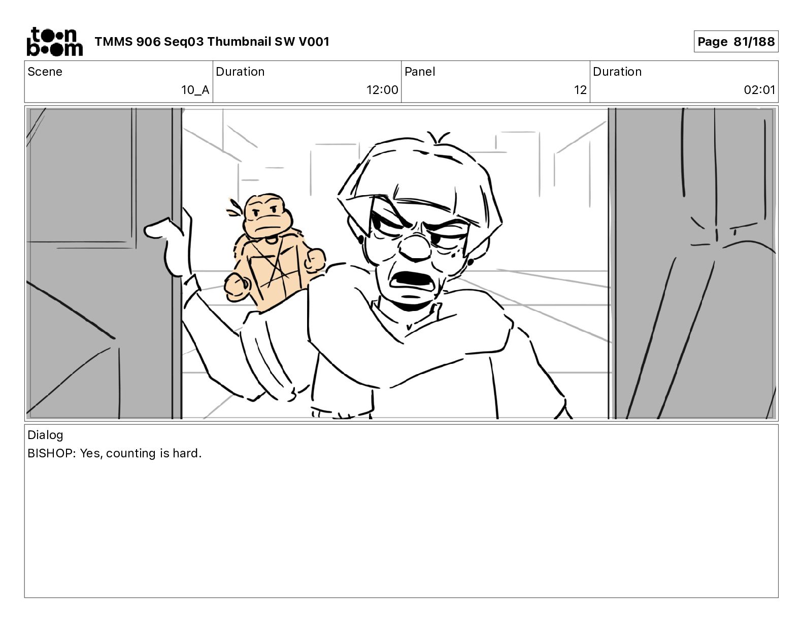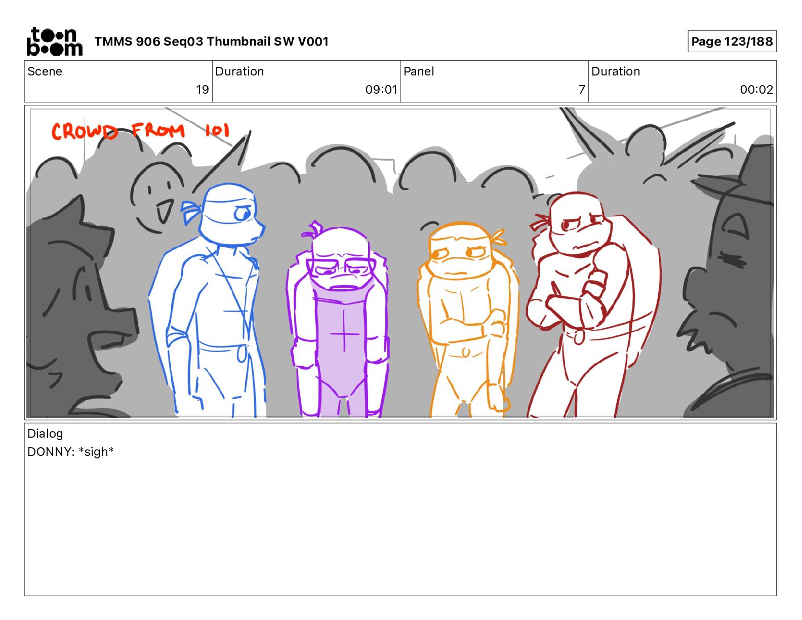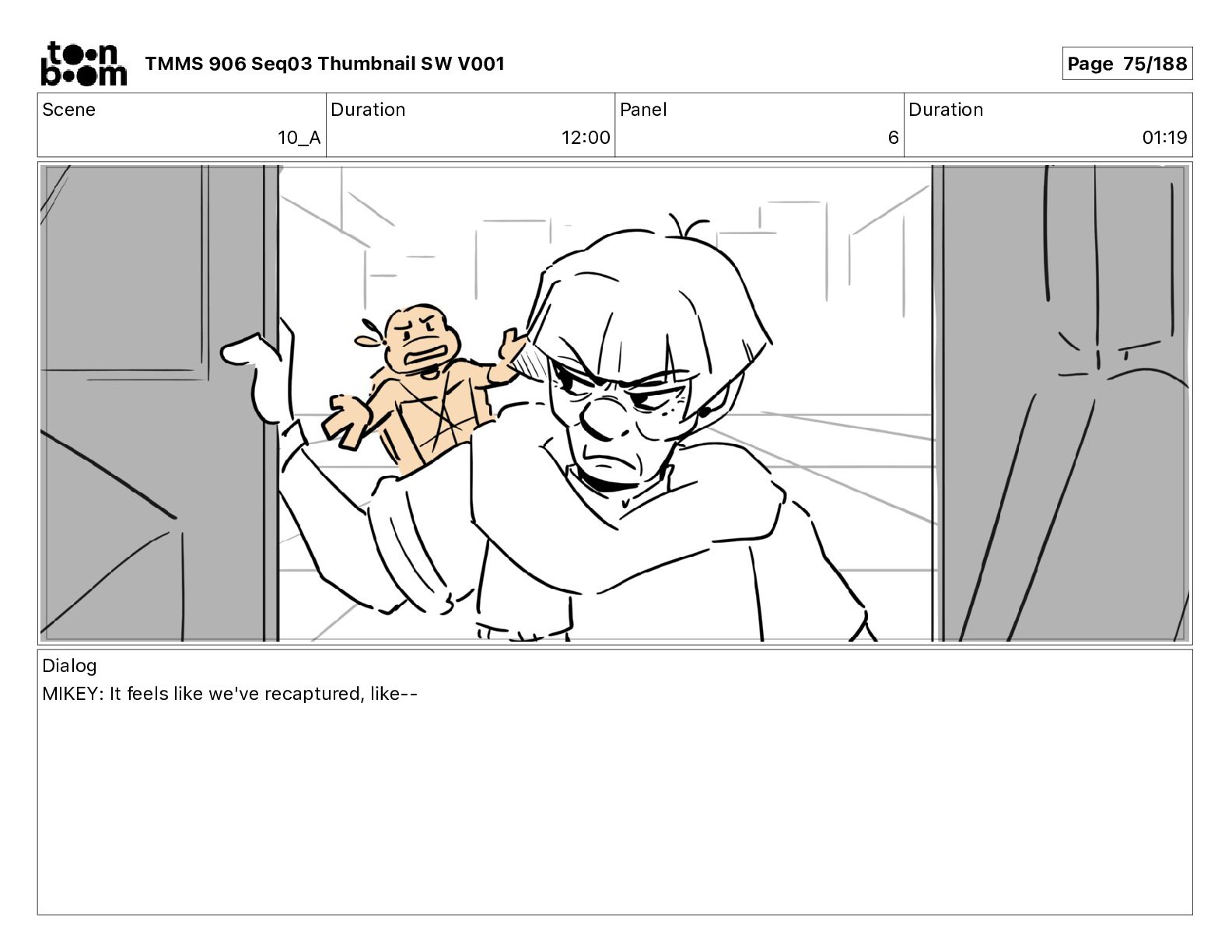 Dialog LEO (O.S.): I said I was sorry! TMMS 906 Seq03 Thumbnail SW V001 Page 159/188