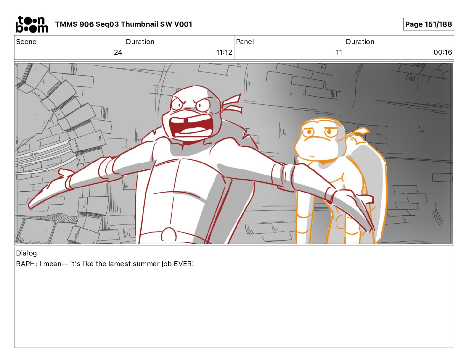 Dialog RAPH: I mean-- it's like the lamest summer job EVER! TMMS 906 Seq03 Thumbnail SW V001 Page 150/188