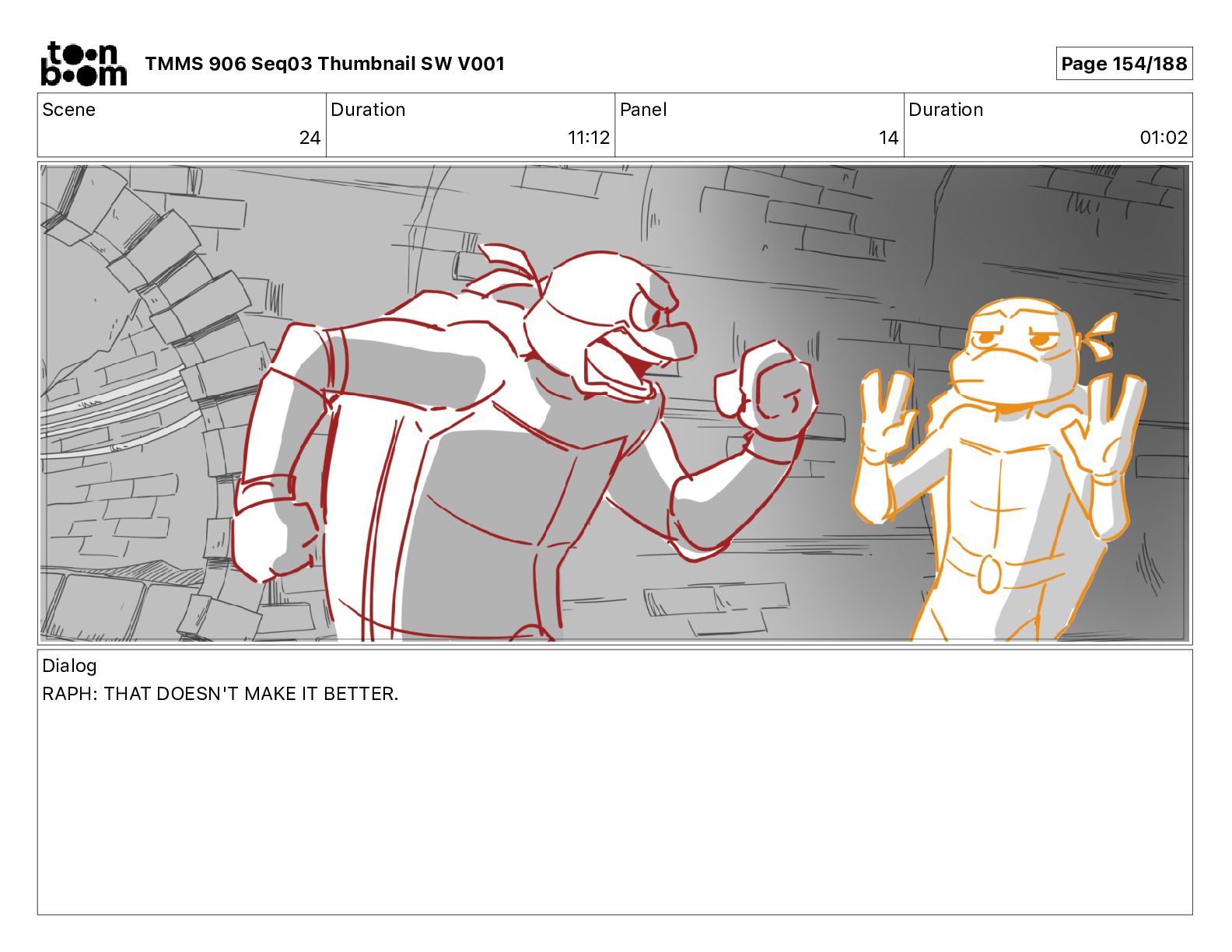 Dialog RAPH: THAT DOESN'T MAKE IT BETTER. TMMS 906 Seq03 Thumbnail SW V001 Page 154/188