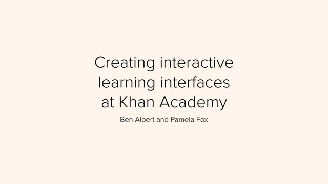 Creating interactive learning interfaces at Khan Academy Ben Alpert and