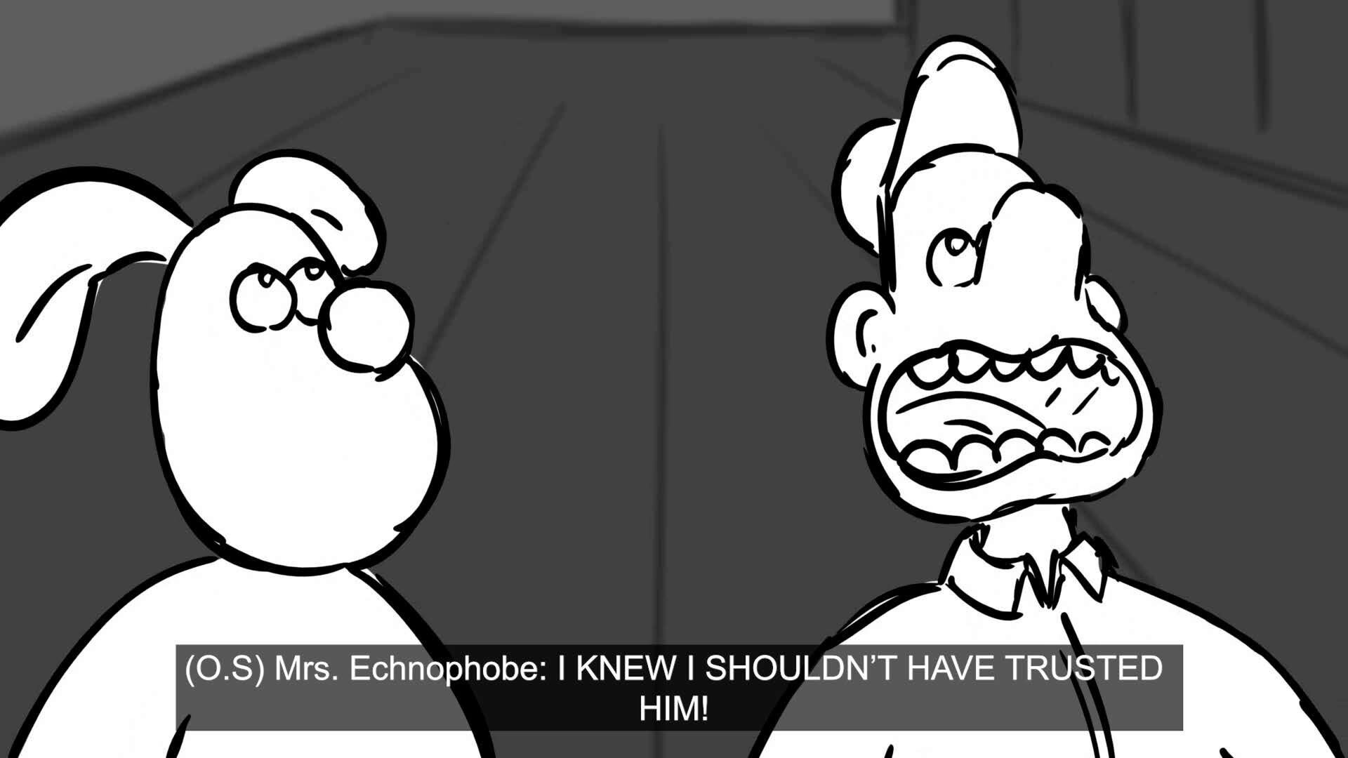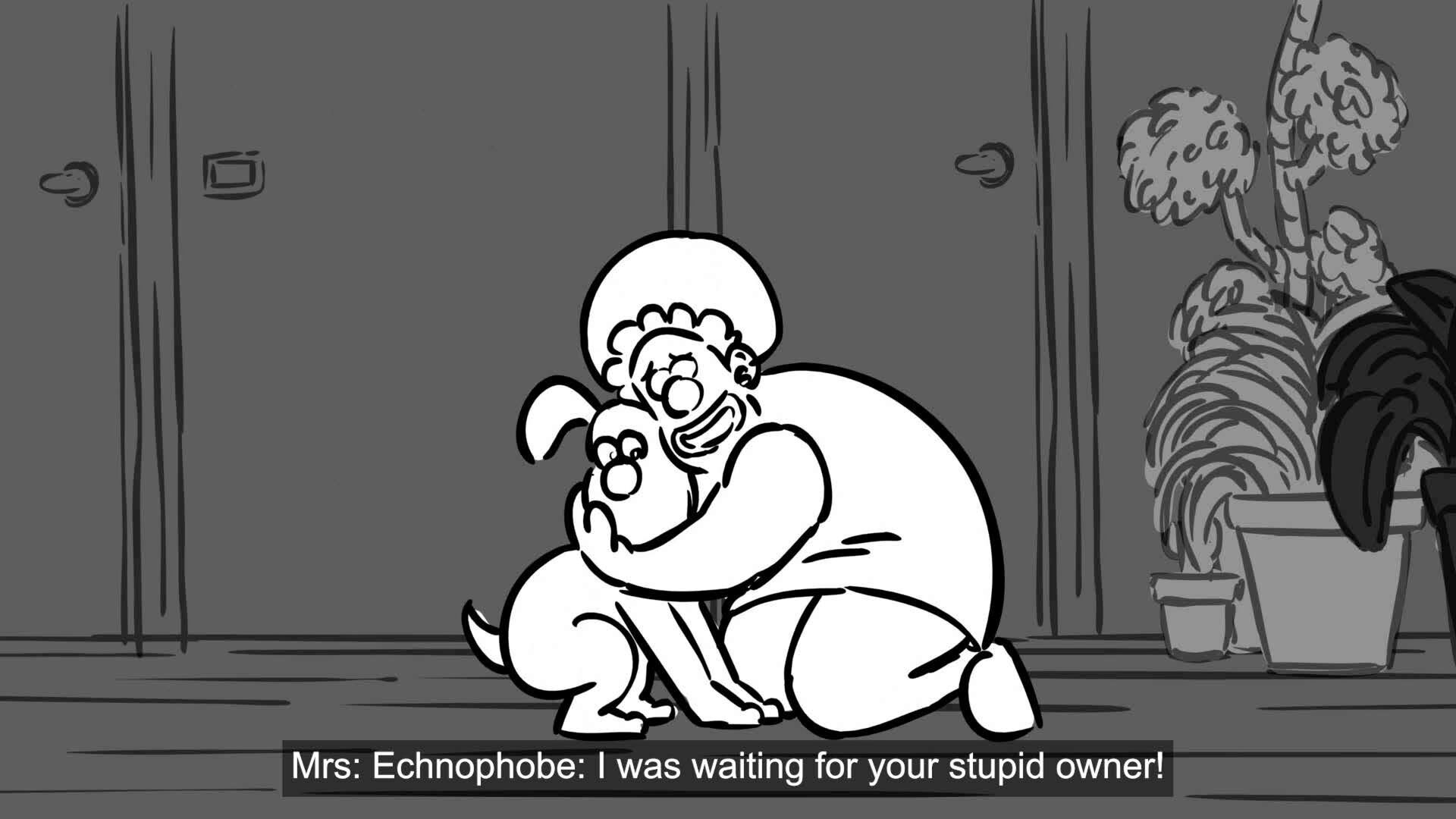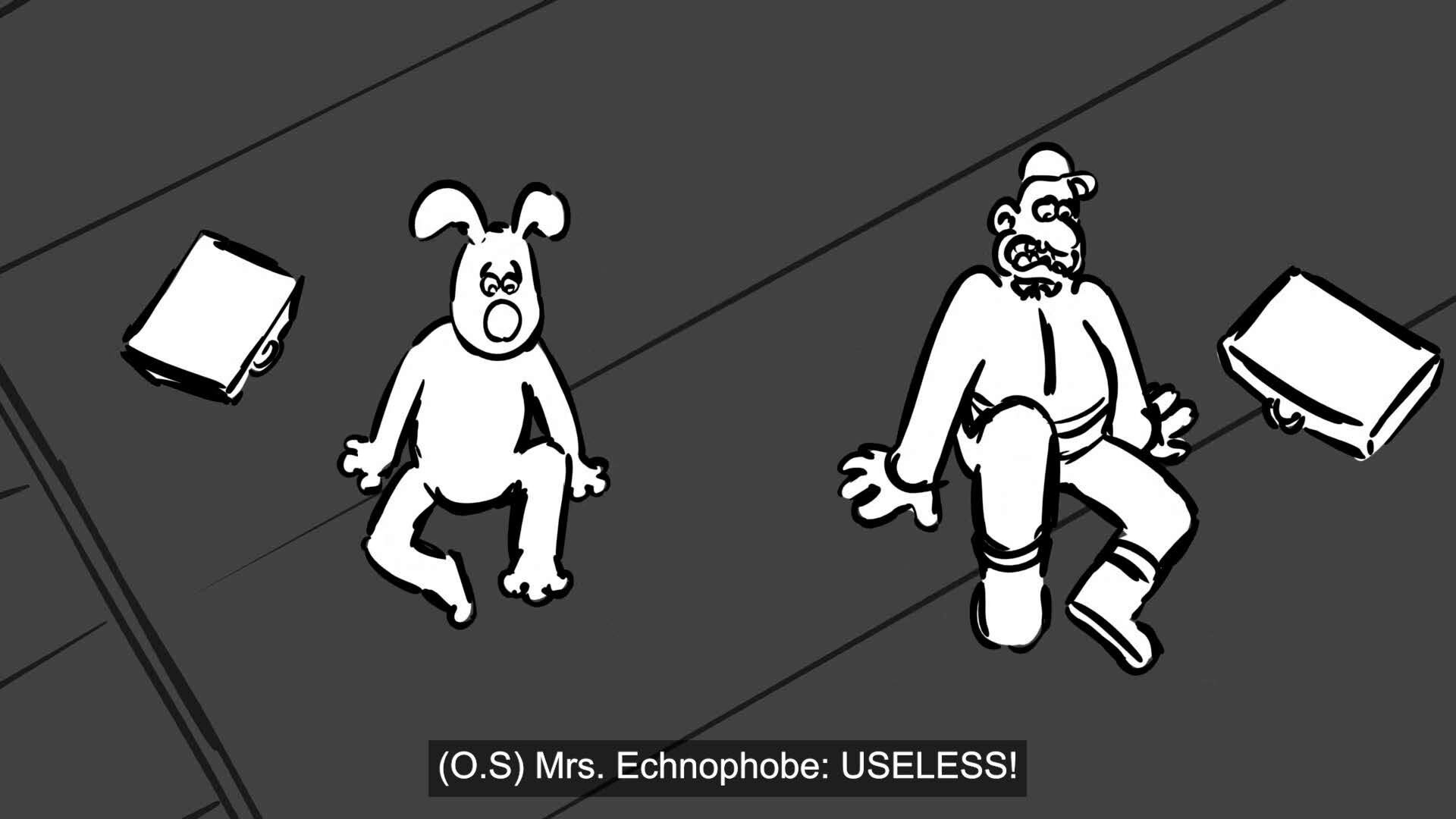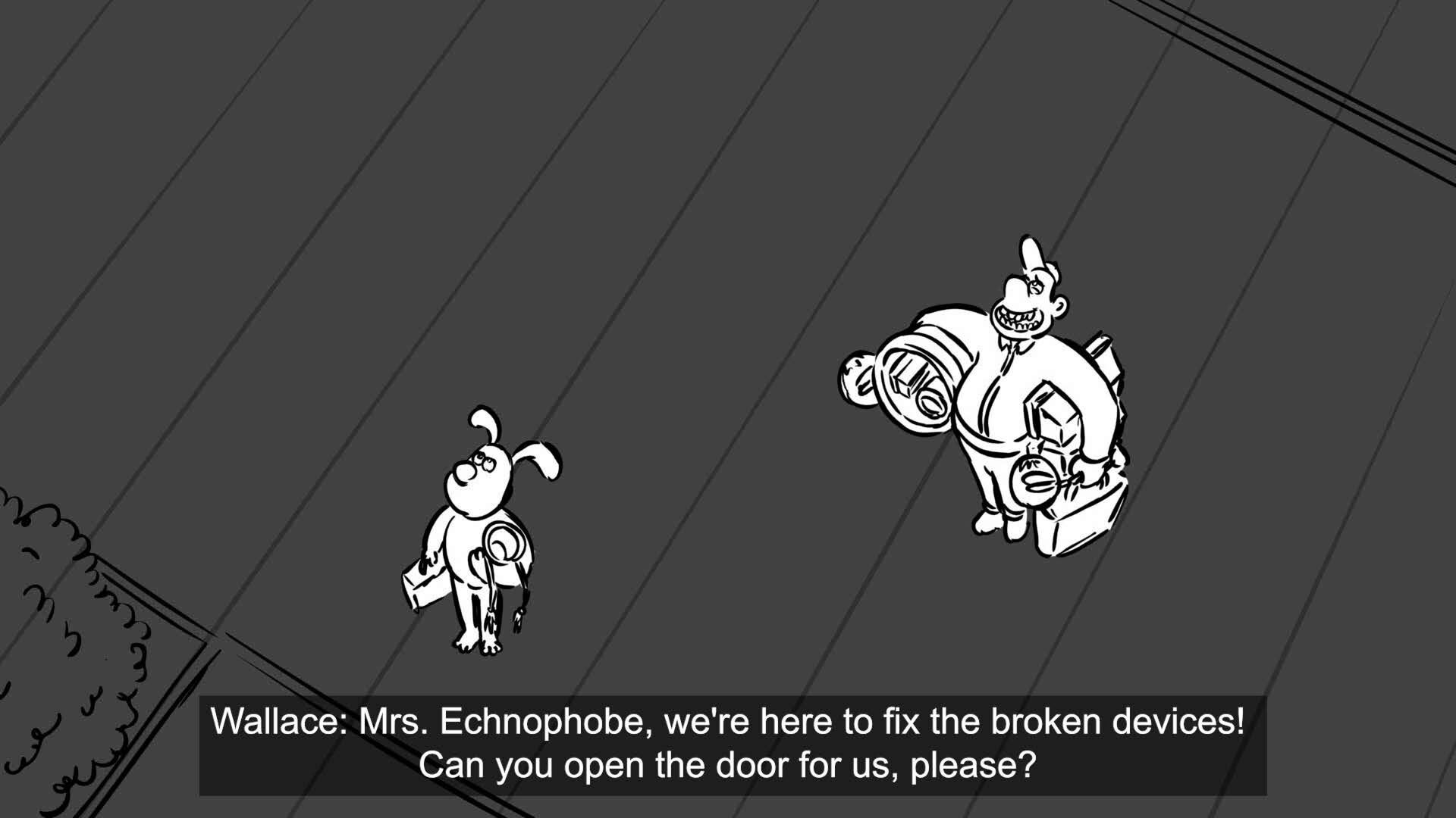 Wallace and Gromit, owners of a quirky home automation company, go to Mrs. Echnophobe to fix some broken devices.