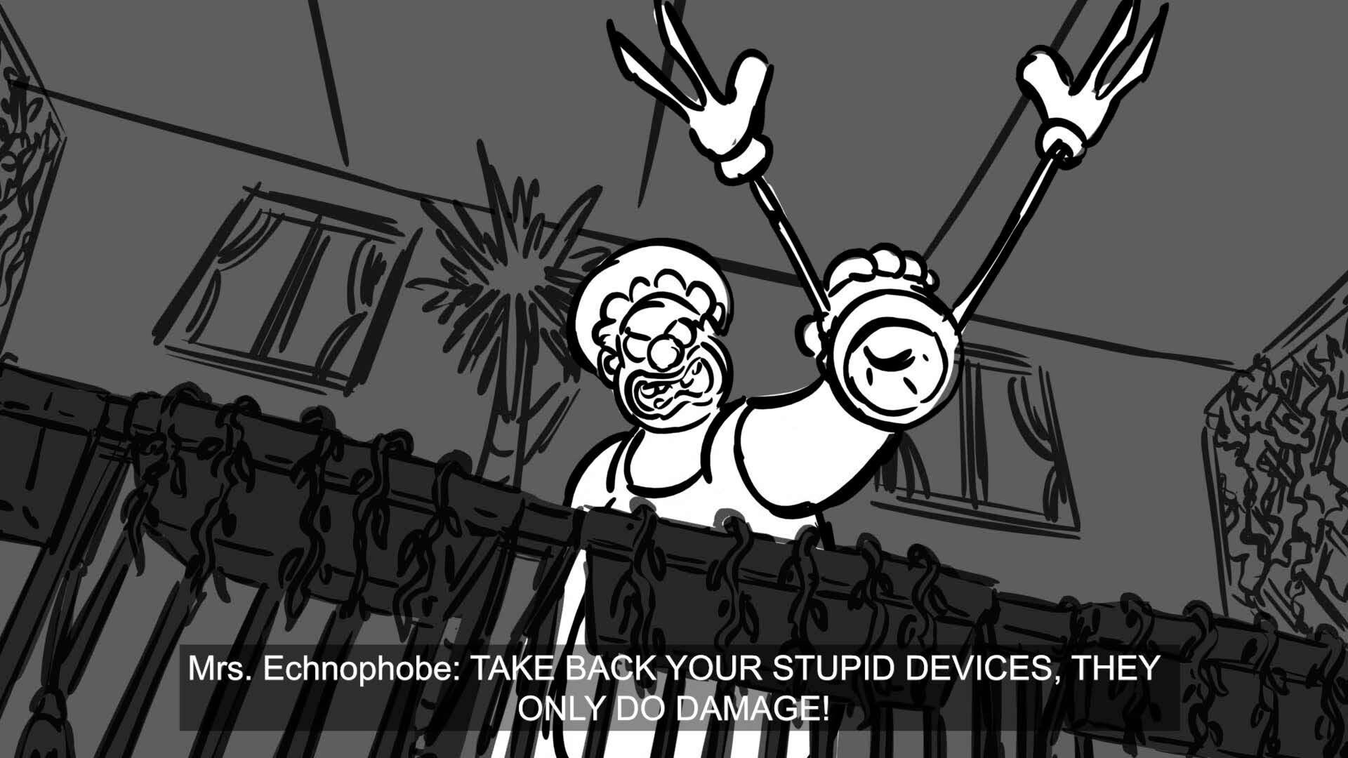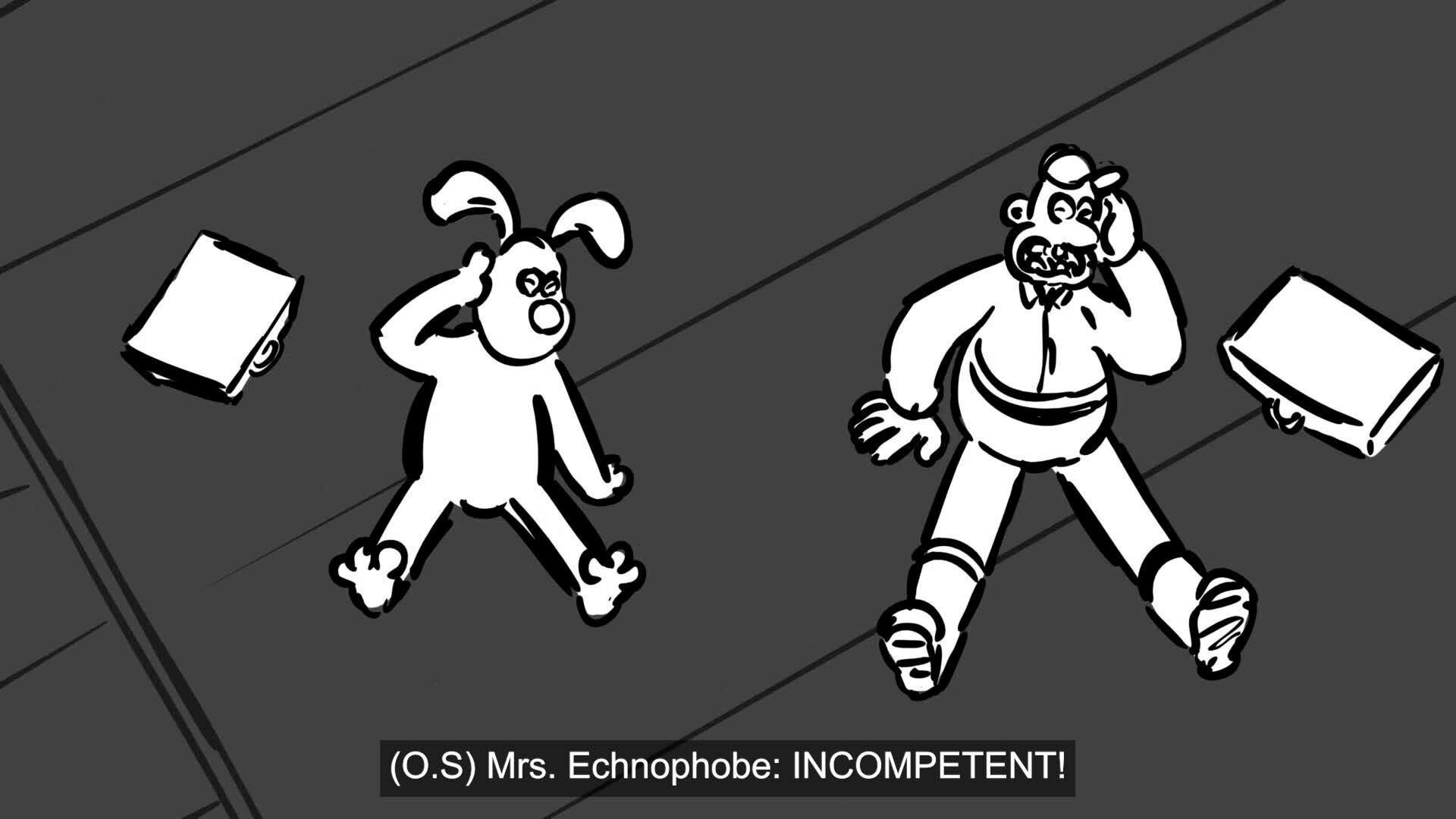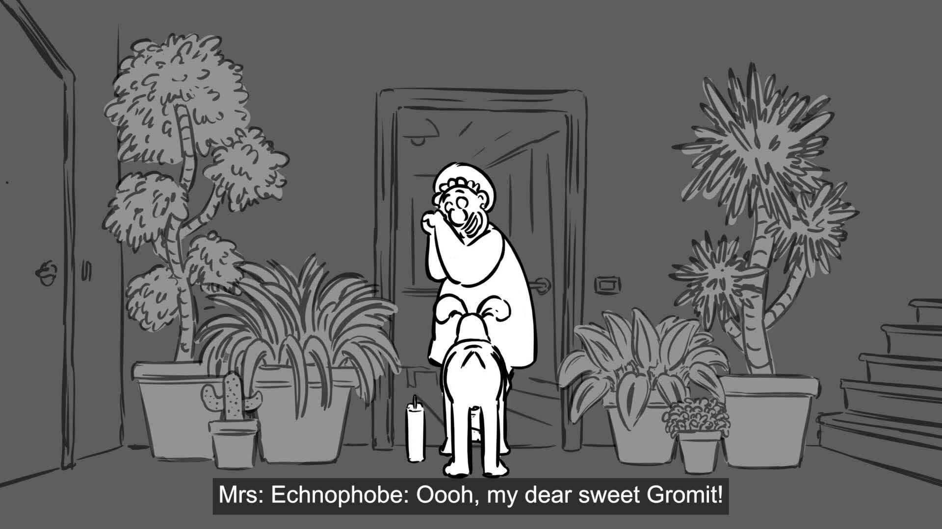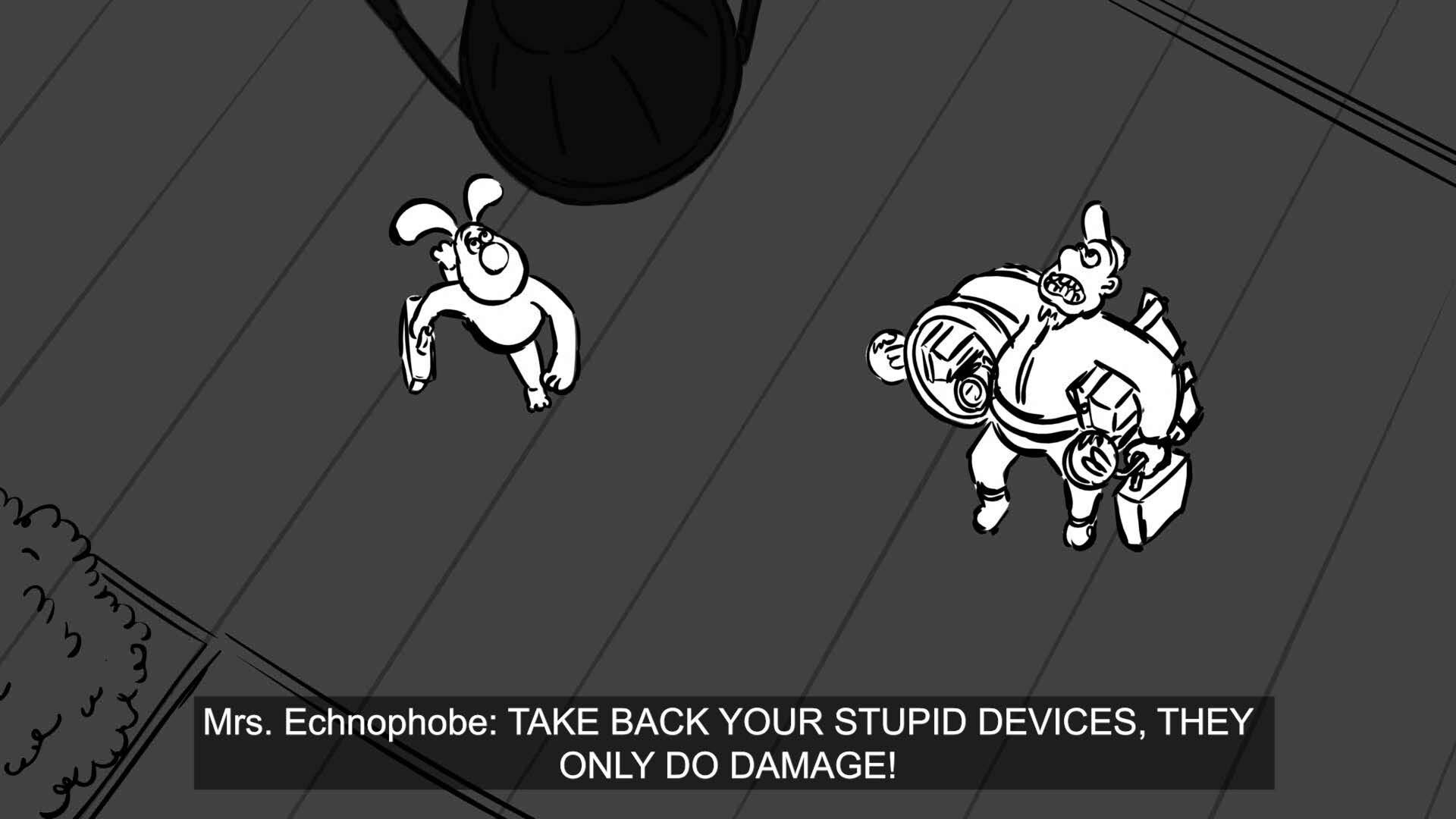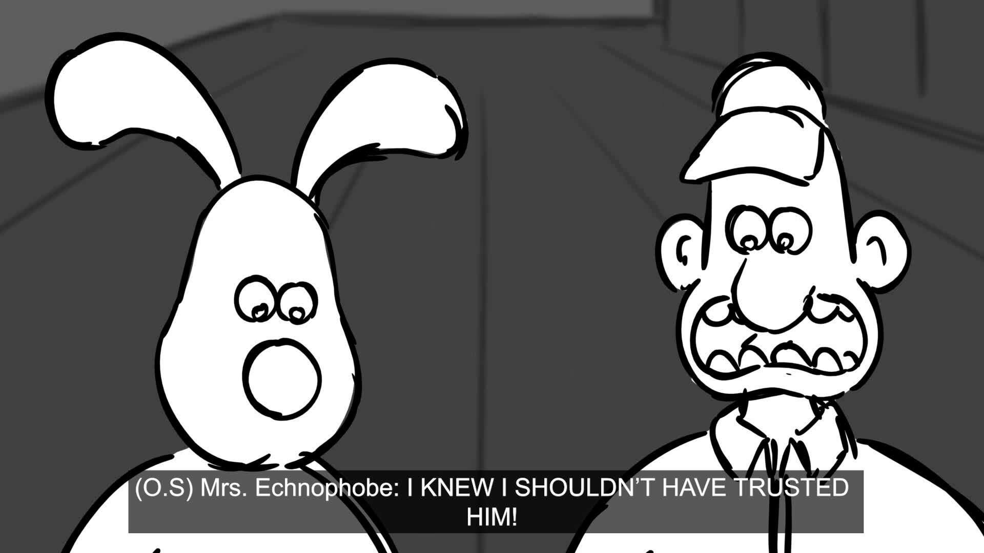 Wallace and Gromit, owners of a quirky home automation company, go to Mrs. Echnophobe to fix some broken devices.
