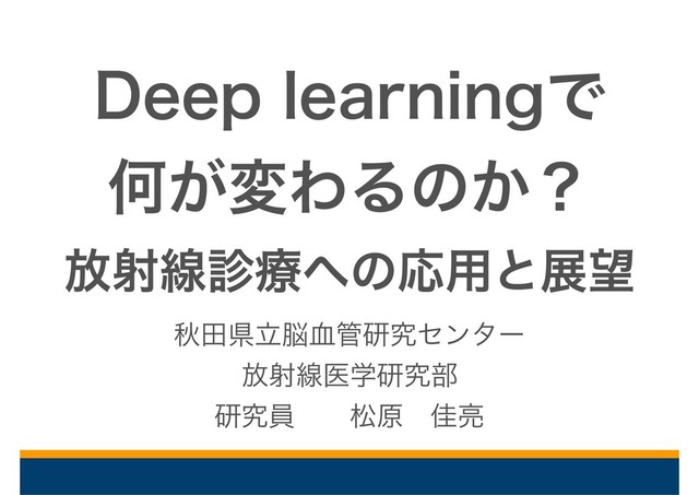 2018/05/19ににぎわい交流館AUで行われた秋田県診療放射線技師会にてdeep learningについて講演させて頂いた際の資料になります。若干補足も加えてあります。