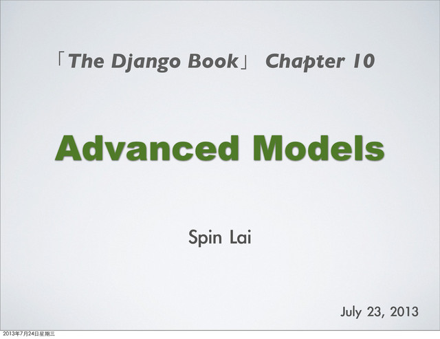 models.DateField() address = models.CharField(max_length=100) city = models.CharField(max_length=50) state = USStateField() # Yes, this is U.S.-centric... def baby_boomer_status(self): "Returns the person's baby-boomer status." import datetime if datetime.date(1945, 8, 1) <= self.birth_date <= datetime.date(1964, 12, 31): return "Baby boomer" if self.birth_date < datetime.date(1945, 8, 1): return "Pre-boomer" return "Post-boomer" def is_midwestern(self): "Returns True if this person is from the Midwest." return self.state in ('IL', 'WI', 'MI', 'IN', 'OH', 'IA', 'MO') def _get_full_name(self): "Returns the person's full name." return u'%s %s' % (self.first_name, self.last_name) full_name = property(_get_full_name) ϋ˜˚ಂɧ