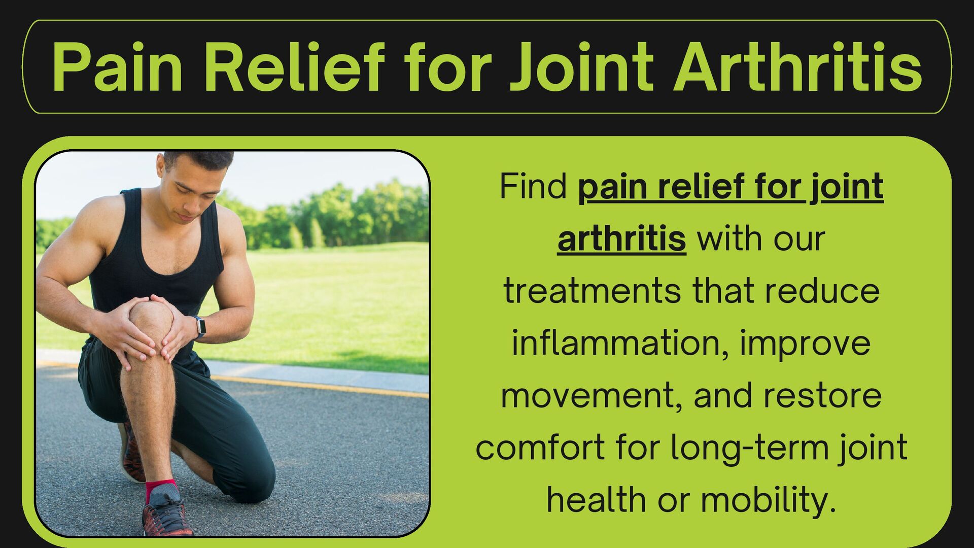 arthritis with our treatments that reduce inflammation, improve movement, and restore comfort for long-term joint health or mobility.