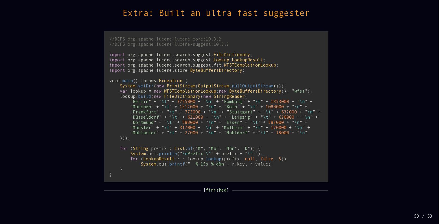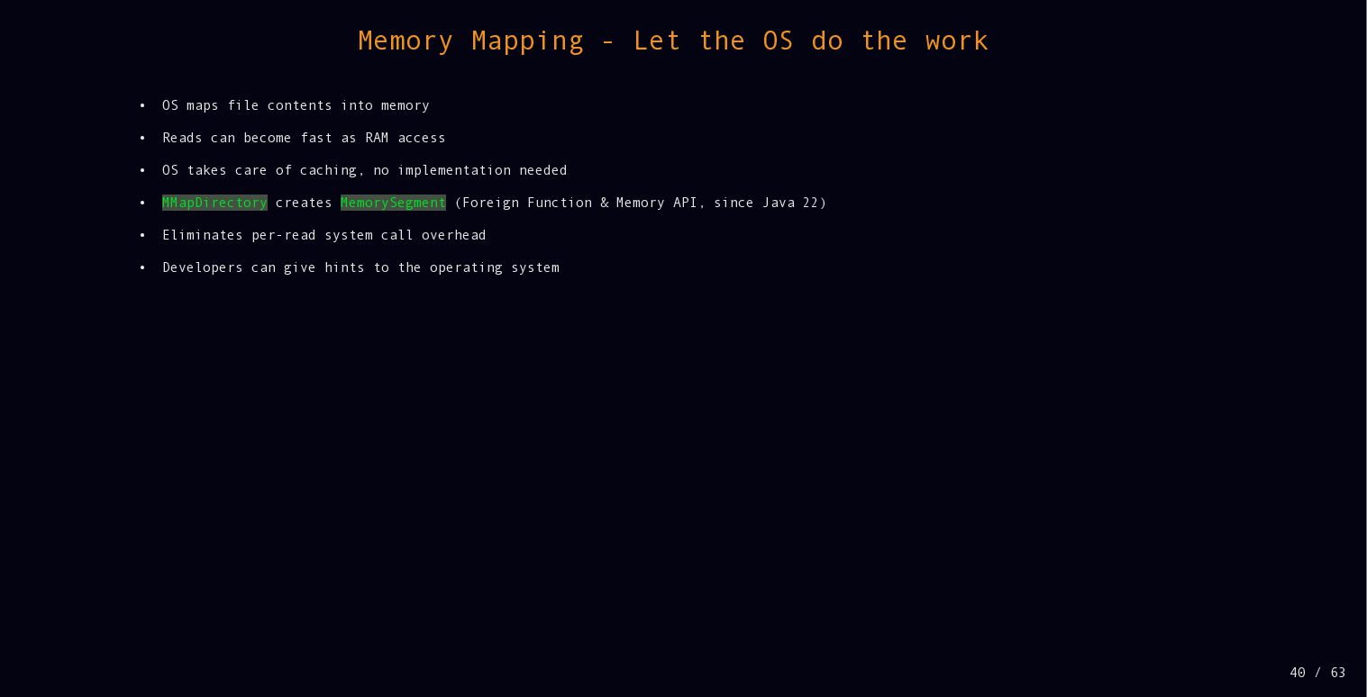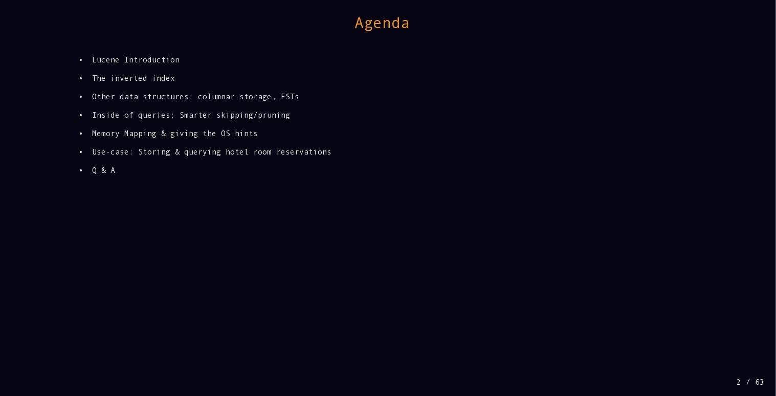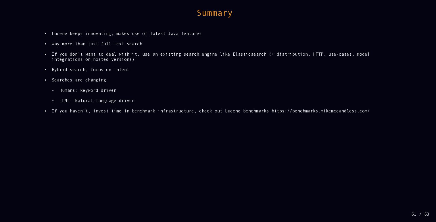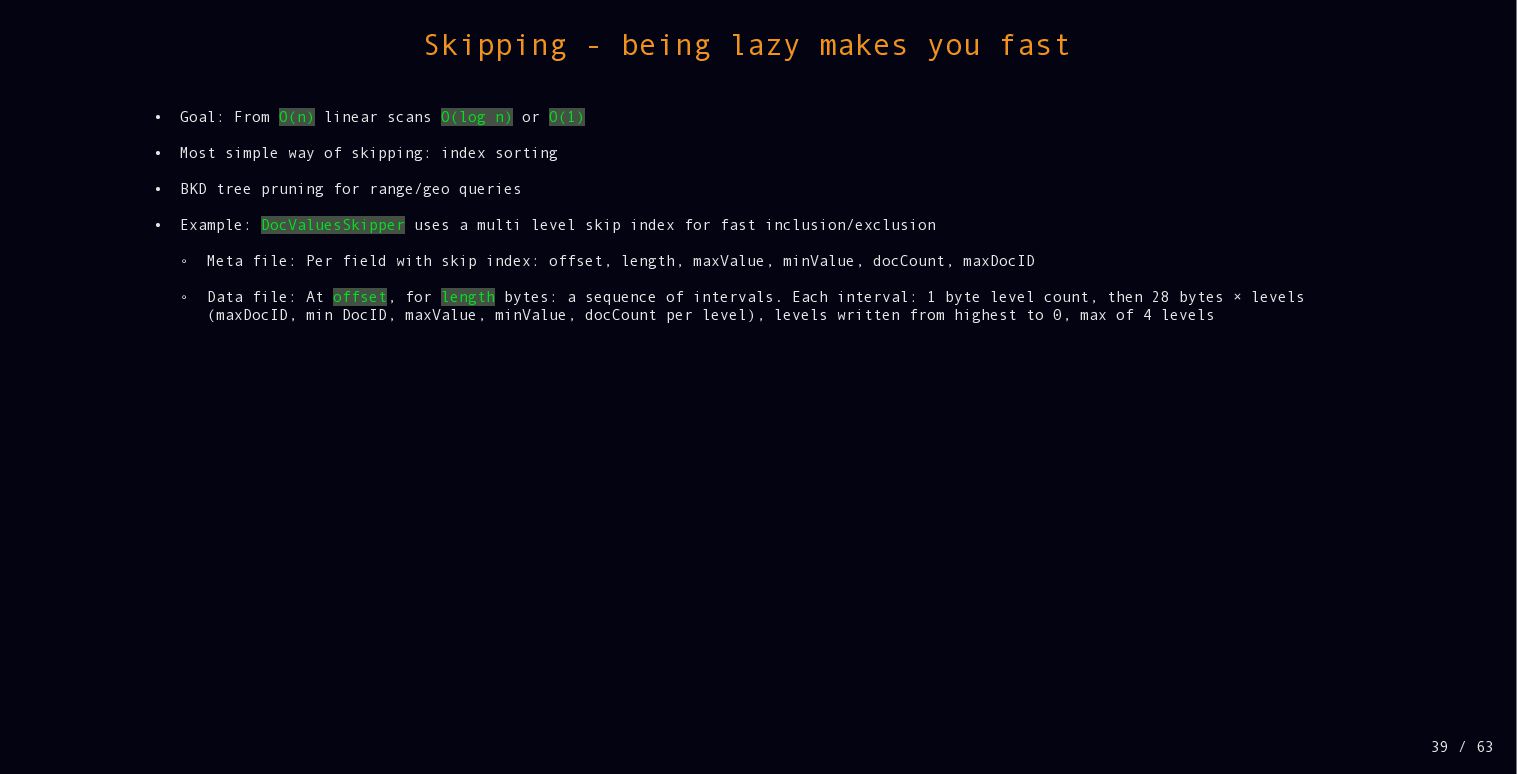 While Lucene is known as a full text search library, there is much more functionality under the hood, including lots of different data structures. Performance is a core focus as well. In this talk we will dive deeper into performance, how latest JDKs and the operating system help and how Lucene stays fast by trying to skip as much data as possible when querying.
