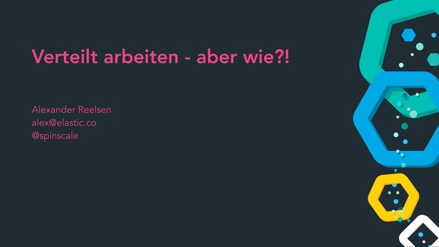 This is a talk about distributed work, how it is done at Elastic. How do we work together, how does the development process look like, what are the hard parts about distributed work, what does work exceptionally well?