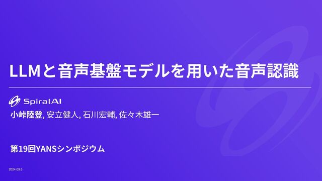 LLMと音声基盤モデルを用いた音声認識 2024.09.6 第19回YANSシンポジウム 小峠陸登, 安立健人, 石川宏輔, 佐々木雄一