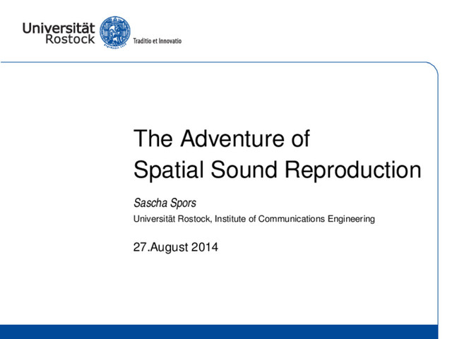 ref. center off-center anchor −1 −0.5 0 0.5 1 −0.5 0 0.5 inter-system coloration (mean, CI) data from [Wierstorf et al., Coloration in Wave Field Synthesis, 2014] no difference extremely different real stereo perceived intra-system coloration system noise data from [Helmut Wittek, Perceptual Differences between Wavefield Synthesis and Stereophony, 2007] Sascha Spors | Spatial Sound Reproduction | Stereophony 13