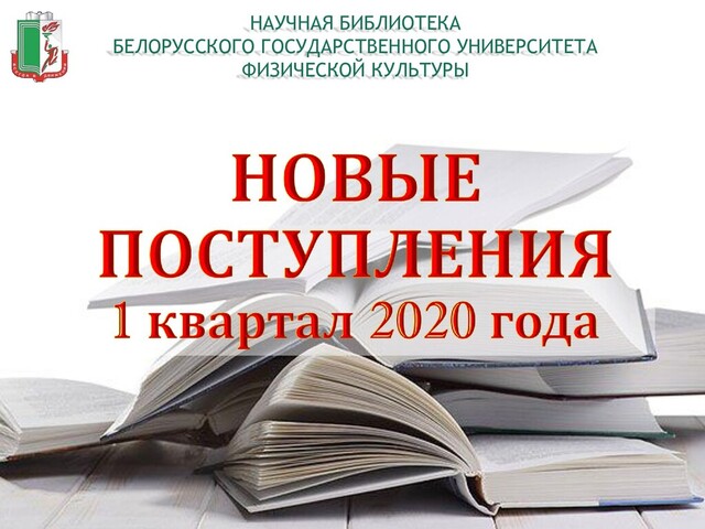 Новые поступления литературы в научную библиотеку Белорусского государственного университета физической культуры за 1 квартал 2020 года.