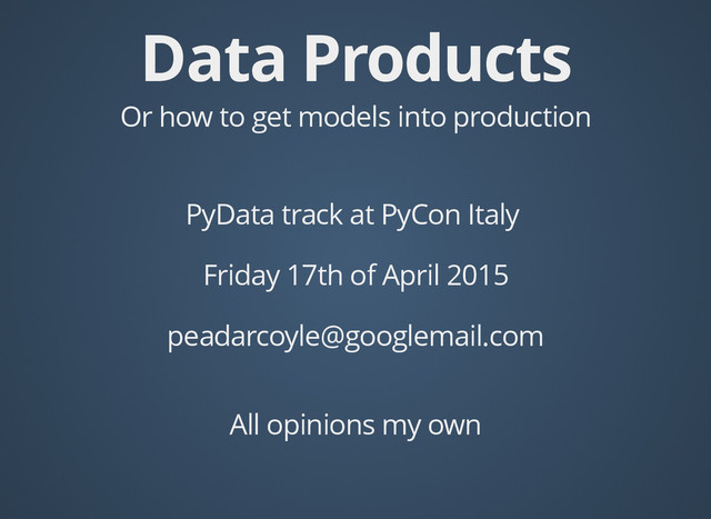 This is the first iteration of the slides I plan to give at PyData in Florence. I'll be discussing a case study of how I leveraged the ScienceOps platform to drive innovation and produce a novel data product for the air traffic industry. I'll discuss the challenges of data products too.