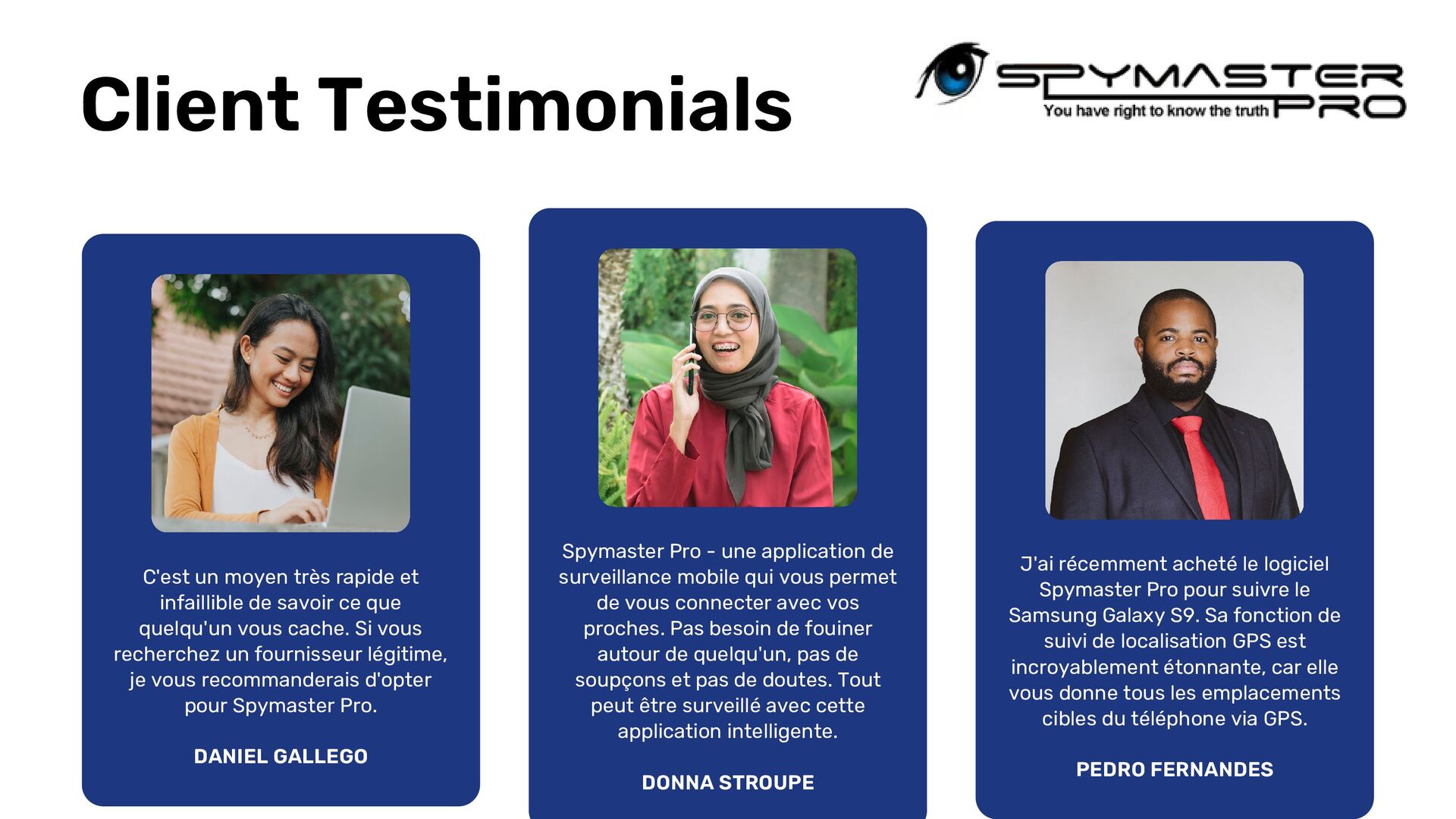 Apprenez à comment trouver le mot de passe de mon copain. Choisissez spymaster pro parmi d'autres applications d'espionnage sur le marché et surveillez secrètement toutes les activités du téléphone portable de votre petit ami, y compris les appels, les messages et les conversations sur les réseaux sociaux.
