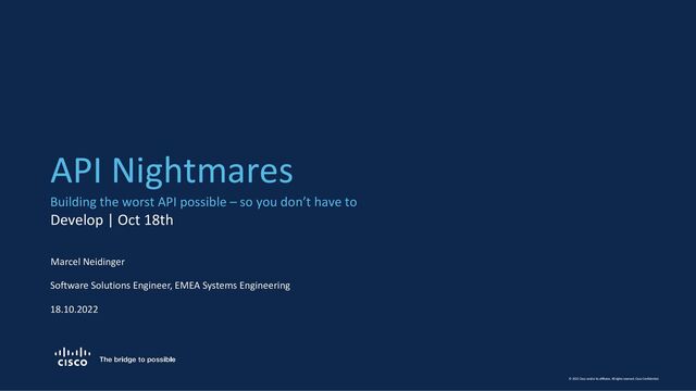 APIs have become ubiquitous in the modern day and age. From web services to clocks everything gets connected through APIs. This growth in interest for APIs has led to an increased focus on designing APIs in such a way that they are easy to consume, easy to maintain, and offer a pleasant developer experience. But what if you don't want your API to be easy and pleasant? This talk is a humorous take at designing a "nightmare API" that offers the worst possible developer experience. Take what you see in this talk - do the opposite - and your developers will thank you for it.