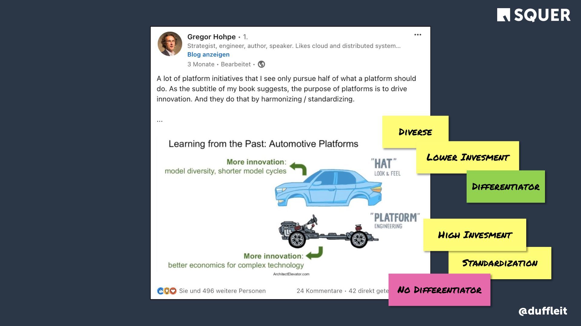 @duffleit Diverse Lower Invesment Differentiator Standardization High Invesment No Differentiator
