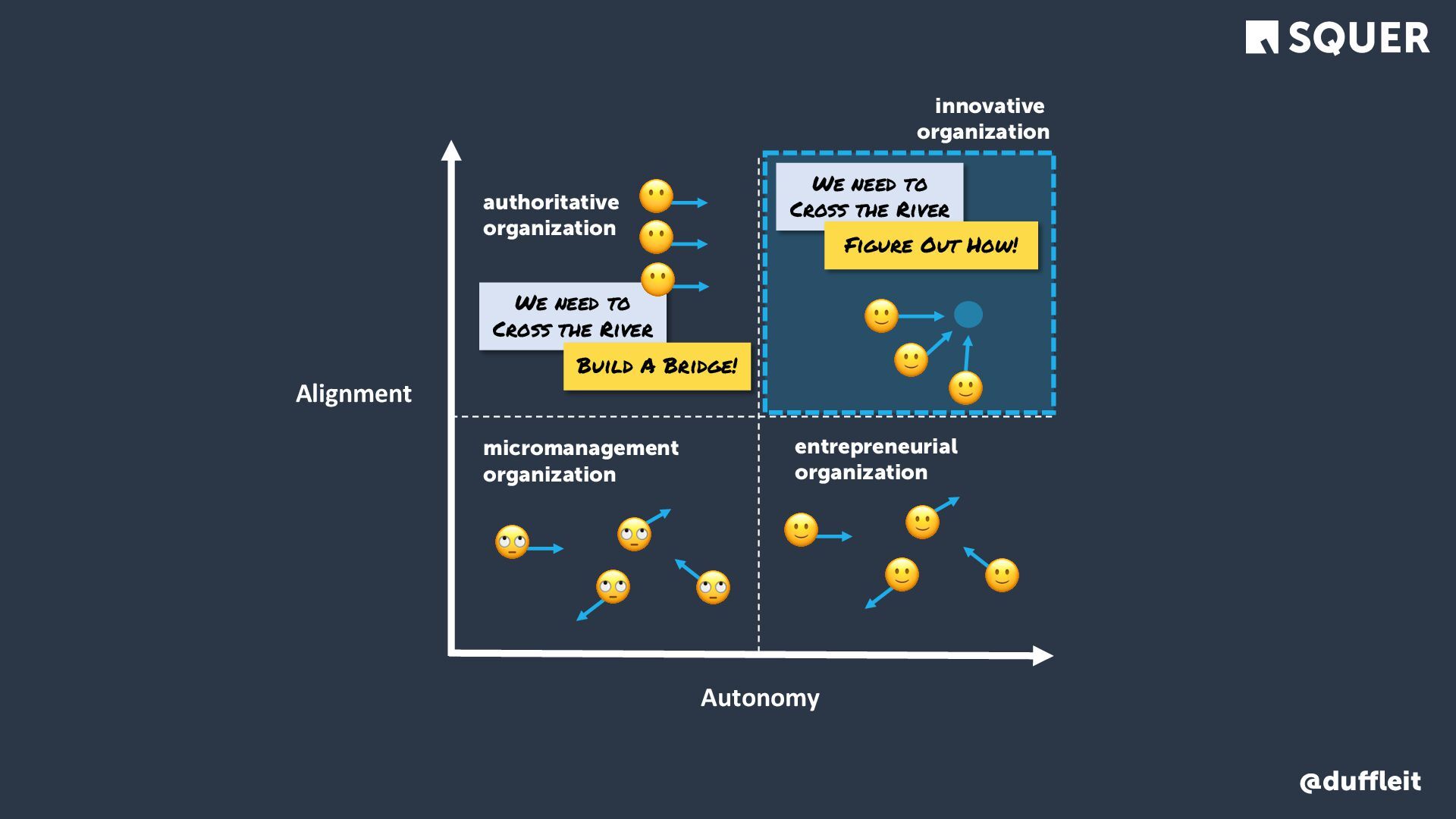 @duffleit innovative organization Alignment Autonomy authoritative organization We need to