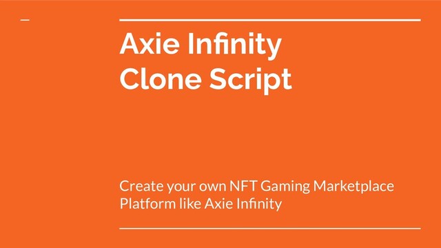 Stimulate your NFT Gaming Activity with Axie Infinity Clone Development to Kick Start your NFT Gaming like Axie Infinity.