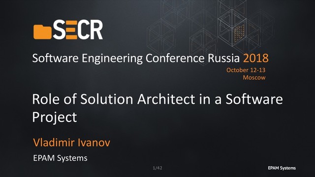 relevant engineering domain. —Good knowledge of architectural theory out of primary technology domain context bounds. —Ability to identify stakeholders and adopt communication style to particular role (effectively communicate with peer client architects and management). EPAM Systems 40/42