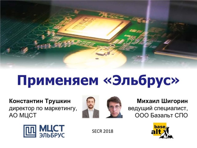 Кроме обзора текущего состояния будет рассказ и о планах по развитию программной и аппаратной составляющих вычислительной платформы «Эльбрус».
