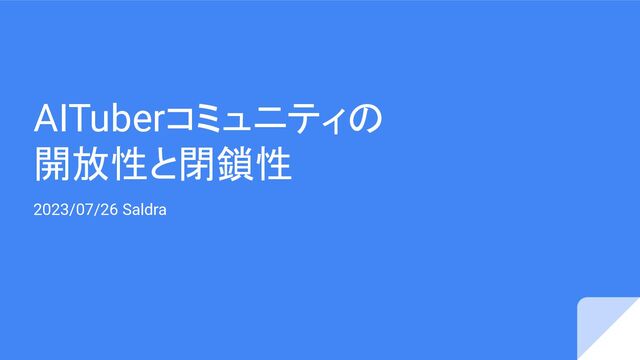 AITuberコミュニティの 開放性と閉鎖性 2023/07/26 Saldra