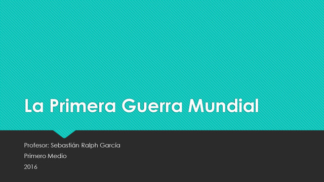 La Primera Guerra Mundial Profesor: Sebastián Ralph García Primero Medio