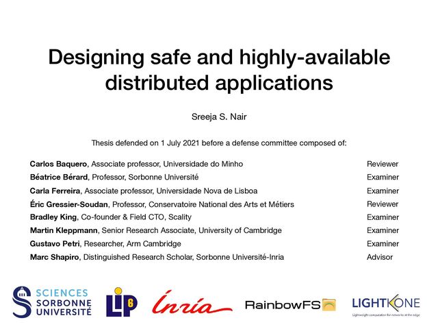 add/remove operations using set CRDTs [0] Move operations are known to be unsafe in concurrent execution [1] A fi x for concurrent move operations is to form a total order for operations [2], but it is expensive Another solution is to convert a move operation into a copy- delete pair [3], but ending up in multiple copies of the node [0] Stéphane Martin, Mehdi Ahmed-Nacer, Pascal Urso. Abstract unordered and ordered trees CRDT. [1] M. Najafzadeh, M. Shapiro, P. Eugster : “Co-Design and Veri fi cation of an Available File System”, VMCAI 2018 [2] Kleppmann, M., Gomes, V. B., Mulligan, D. P., & Beresford, A. R. OpSets: Sequential Speci fi cations for Replicated Datatypes. [3] Vinh Tao, Marc Shapiro, and Vianney Rancurel. Merging semantics for con fl ict updates in geo-distributed fi le systems. 53