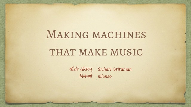 | N S R G | ((P S,,)) , ((S , S>>> S)) -((D. S. D)) ((S , S>> S))- S R ((G<< G , ,)) - Database of phrases - < and > increase and decrease pitch - ( and ) are speed factors; deeper is faster What is it? Kinds of gamaka Prescriptive vs Descriptive Prior art Synthesis Rendering PASR Gamaka गमक / Ornamentation