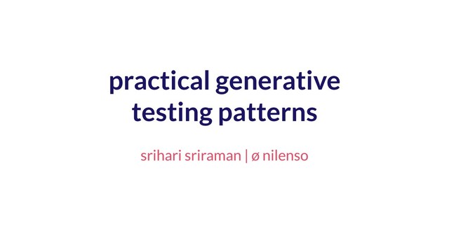matrices for flows 4. deterministic seed data 5. model external domain 1. store everything immutably 2. params as latest values in state 3. catalog known errors 4. abstract request engine 1. algebraic properties 2. state machines as properties 3. domain based invariants 1. tests as portable data 2. domain based checkpoints 3. flow timeline, and walk throughs 4. automated bug reports generation assertion execution diagnosis