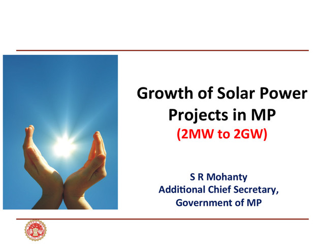 sta<ons to be established for solar radia<on assessment • 9 sta<ons already established (Rewa, Ujjain, Jabalpur, Ratlam, Mandsaur, Sagar, Neemuch, Gwalior, Rajgarh)