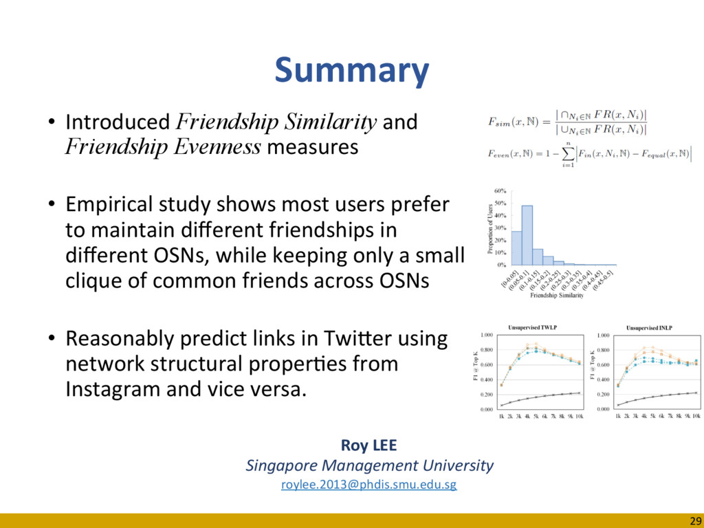 Due to the proliferation of online social networks (OSNs), users find themselves participating in multiple OSNs. These users leave their activity traces as they maintain friendships and interact with users in these OSNs. In this work, we analyze how users maintain friendship in multiple OSNs by studying users who have accounts in both Twitter and Instagram. Specifically, we study the similarity of a user's friends and the evenness of friendship distribution in multiple OSNs. Our study shows that most users in Twitter and Instagram prefer to maintain different friendships in the two OSNs, keeping only a small clique of common friends in across the OSNs as illustrated by the left skewed friendship similarity distribution. Based upon our empirical study, we conduct link prediction experiments to predict missing friendship links in multiple OSNs using the neighborhood features, neighborhood friendship maintenance features and cross-link features. Our link prediction experiments shows that unsupervised methods can yield good accuracy in predicting links in one OSN using another OSN data and the link prediction accuracy can be further improved using supervised method with friendship maintenance and others measures as features.