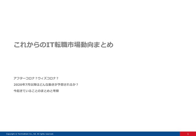 Copyright © TechnoBrain Co., ltd. All rights reserved. これからのIT転職市場動向まとめ アフターコロナ?ウィズコロナ?