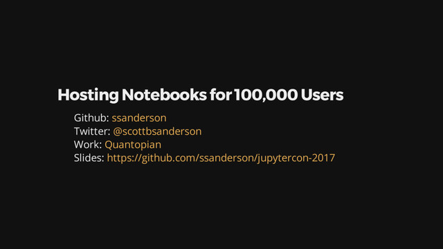 Scott Sanderson describes the architecture of the Quantopian Research Platform, a Jupyter Notebook deployment serving a community of over 100,000 users, explaining how, using standard extension mechanisms, it provides robust storage and retrieval of hundreds of gigabytes of notebooks, integrates notebooks into an existing web application, and enables sharing notebooks between users.