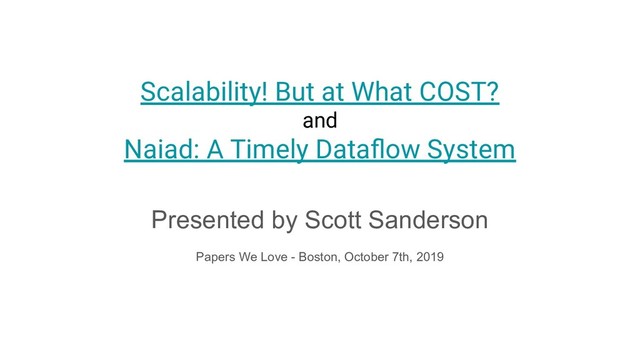 on an underlying formalism: timely dataflow. ◦ Timely dataflow supports iterative computations, which feed values back into themselves until some termination condition (e.g., N iterations, fixed point). ▪ These computations are expressed as cycles in the dataflow graph. ▪ Cycles must be confined to a “loop context”. ▪ Record timestamp inside a loop context becomes a tuple of (epoch, iteration). ▪ Upon exiting the loop context, loop counter gets stripped back off. ◦ Structured timestamps mean that Naiad only defines partial order on messages. This enables new kinds of parallelism in ways that I don’t totally understand. ▪ Example: For an incremental iterative algorithm, we might be able to run step (1, 0) in parallel with step (0, 1).