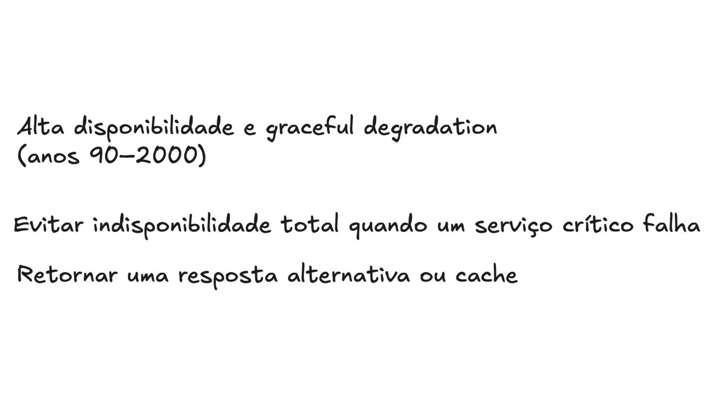 Fallback: Abordei este padrão, que visa garantir a alta disponibilidade mesmo quando um serviço crítico falha. O objetivo é retornar uma resposta alternativa, como um valor padrão ou um dado em cache, para evitar que o sistema pare completamente.