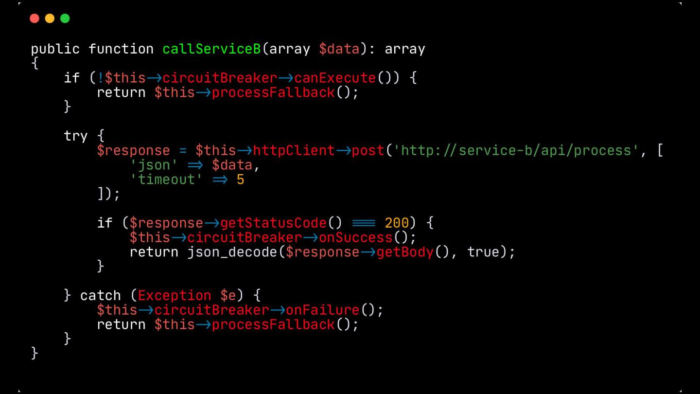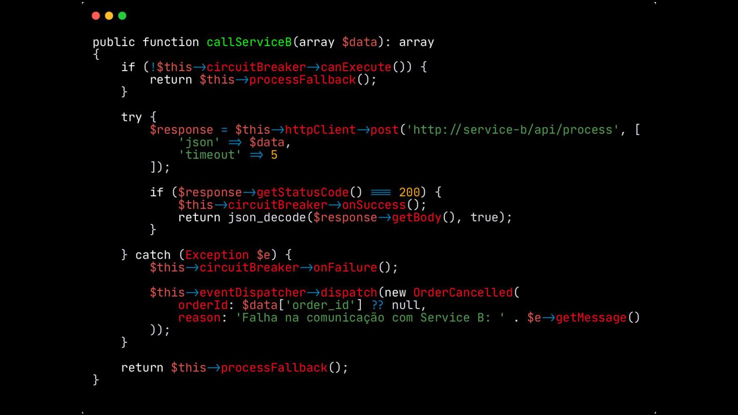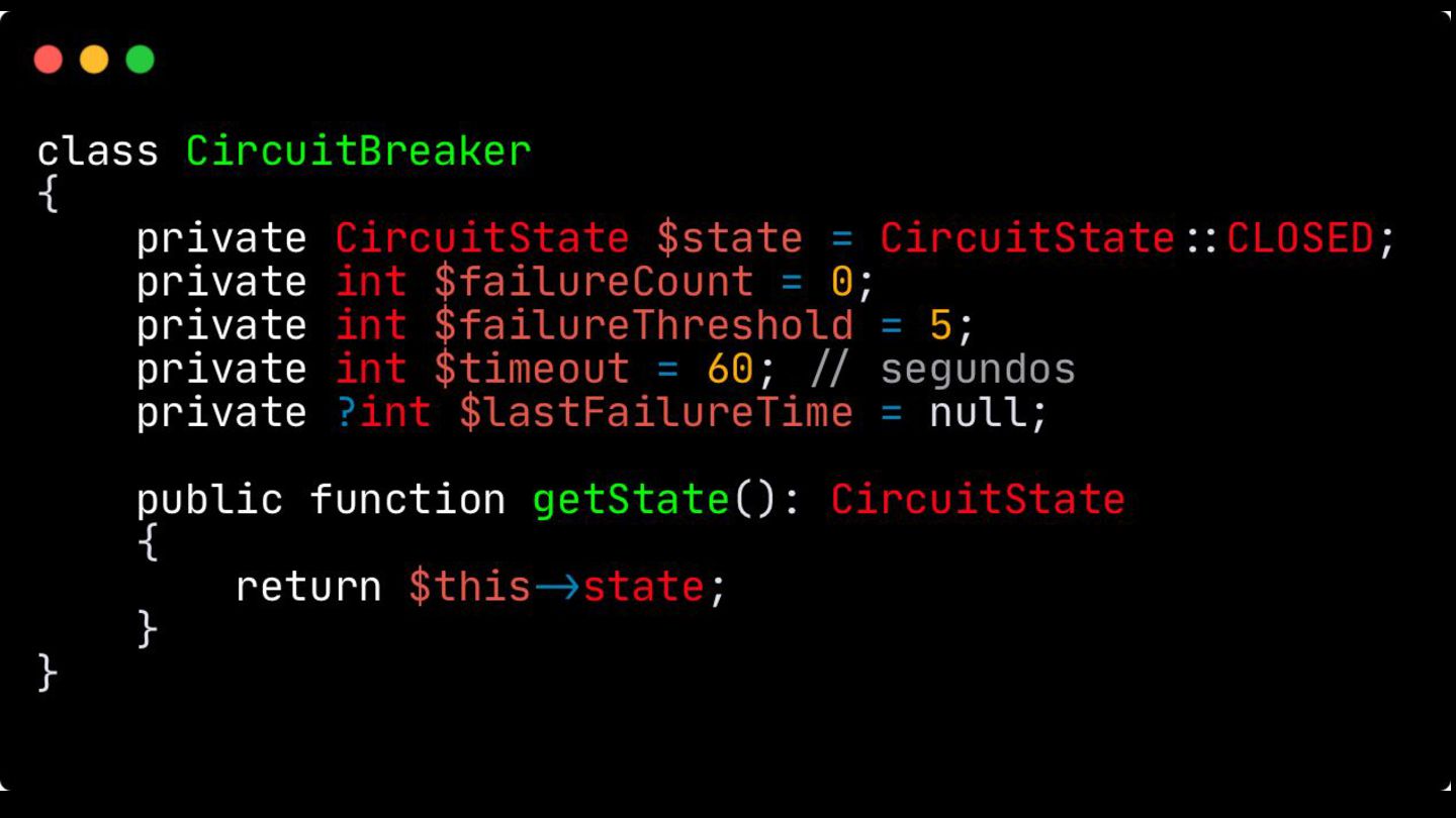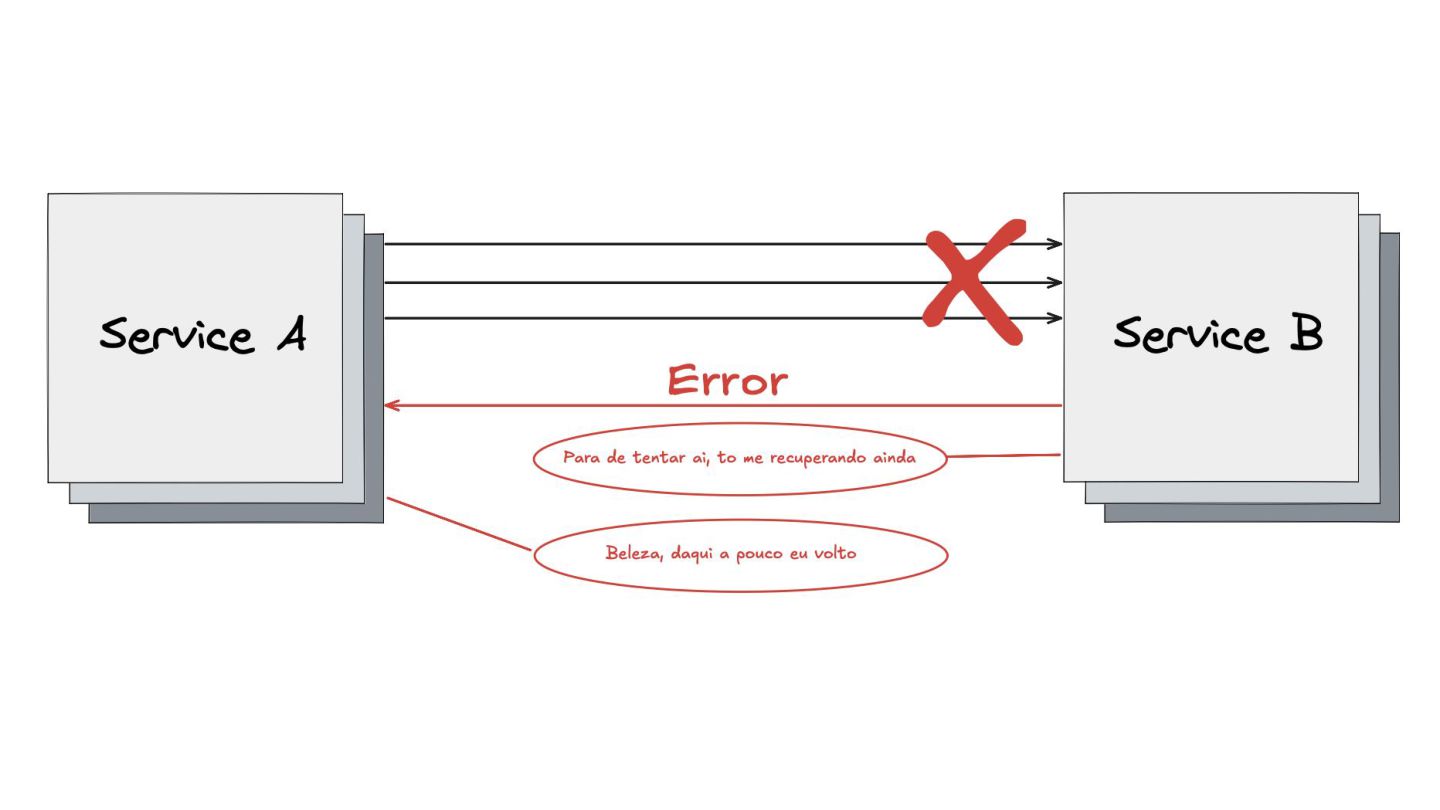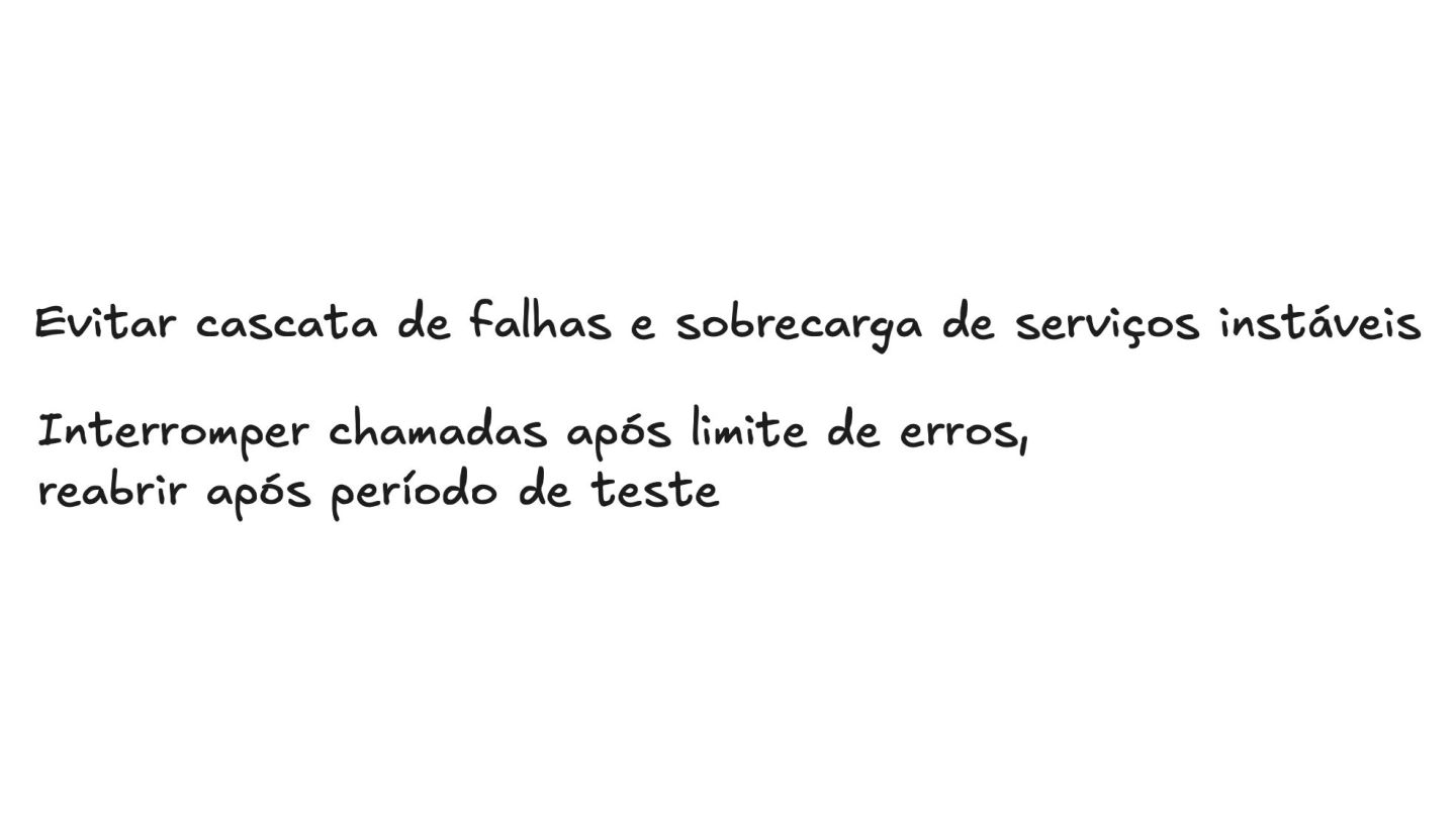 Circuit Breaker: Inspirado em disjuntores elétricos , este padrão evita uma cascata de falhas. Ele interrompe as chamadas para um serviço instável depois de um certo número de erros e só tenta novamente após um período de teste.