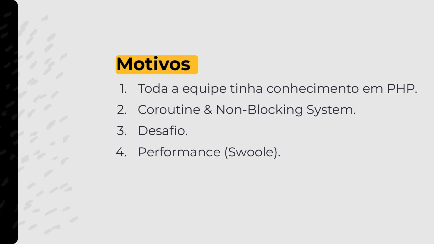 Motivos 1. Toda a equipe tinha conhecimento em PHP. 2.