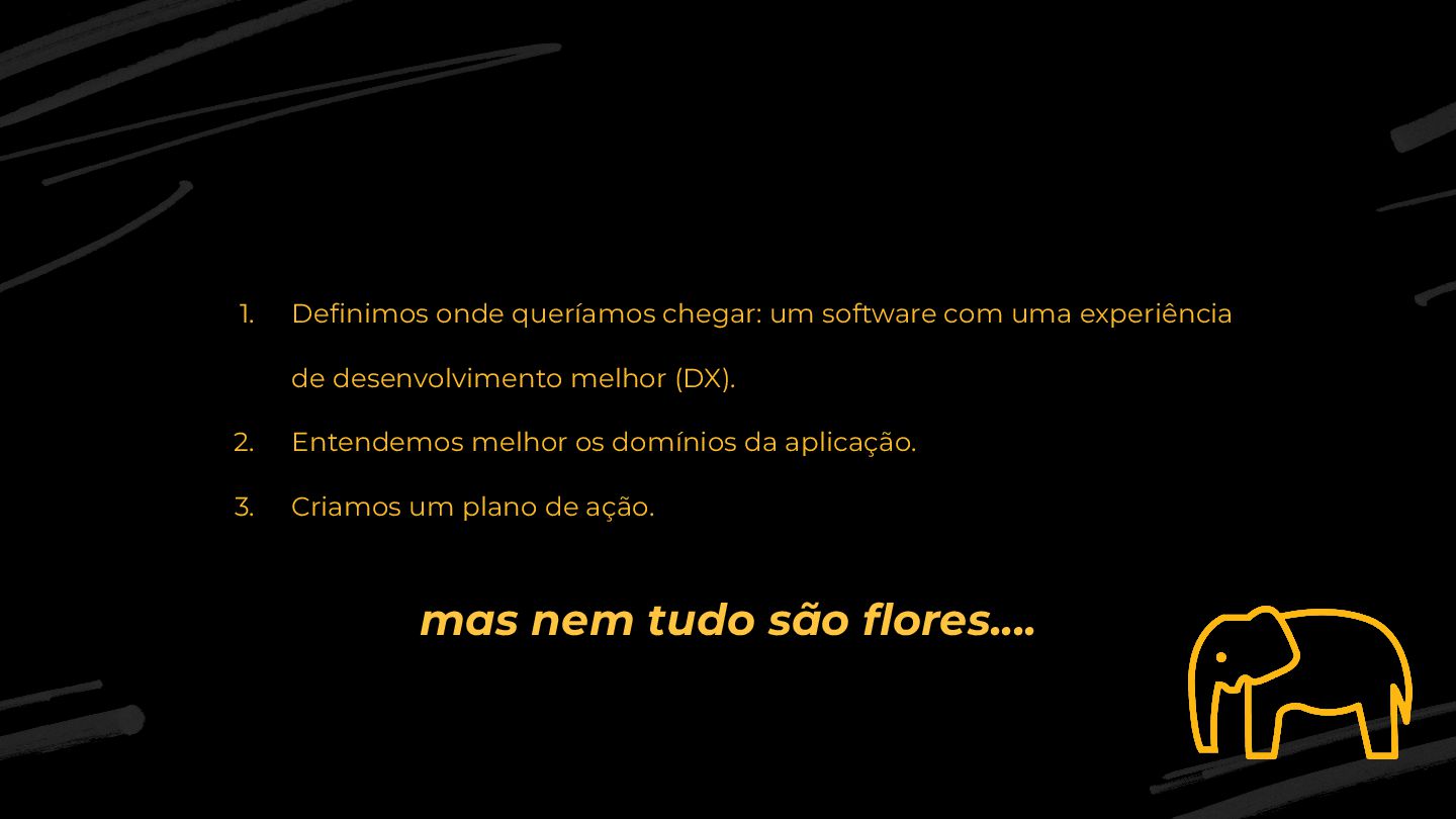 de desenvolvimento melhor (DX). 2. Entendemos melhor os domínios da aplicação. 3. Criamos um plano de ação. mas nem tudo são flores….
