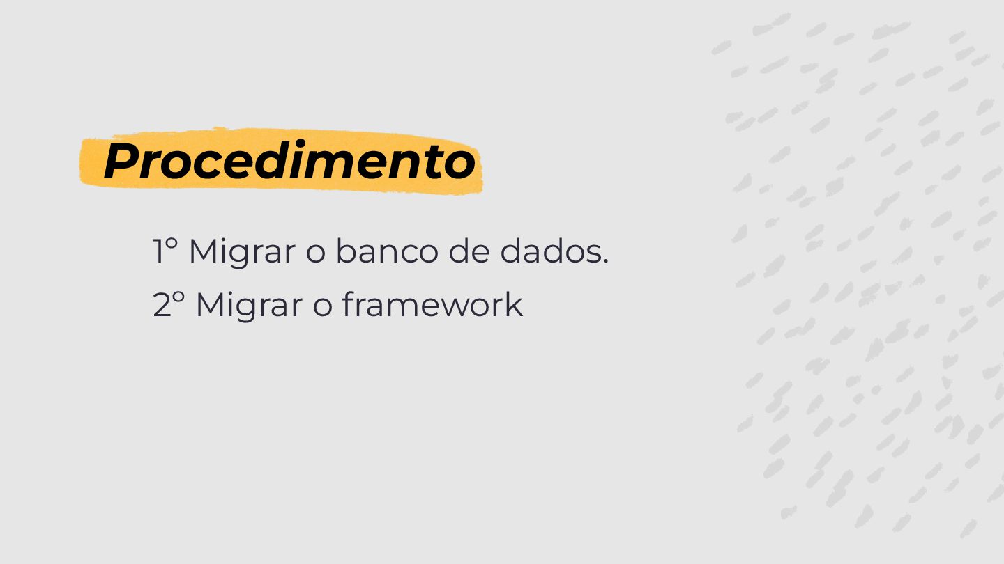 Procedimento 1º Migrar o banco de dados. 2º Migrar o