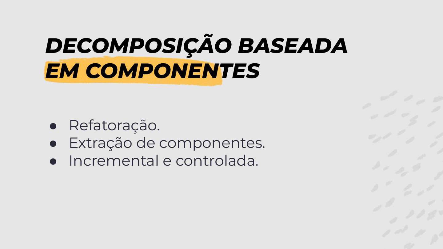 DECOMPOSIÇÃO BASEADA EM COMPONENTES • Refatoração. • Extração de componentes.