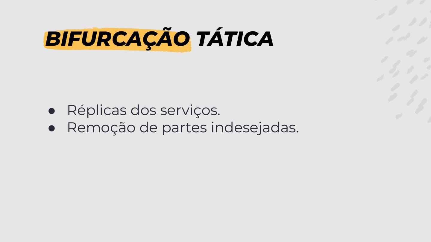 BIFURCAÇÃO TÁTICA • Réplicas dos serviços. • Remoção de partes