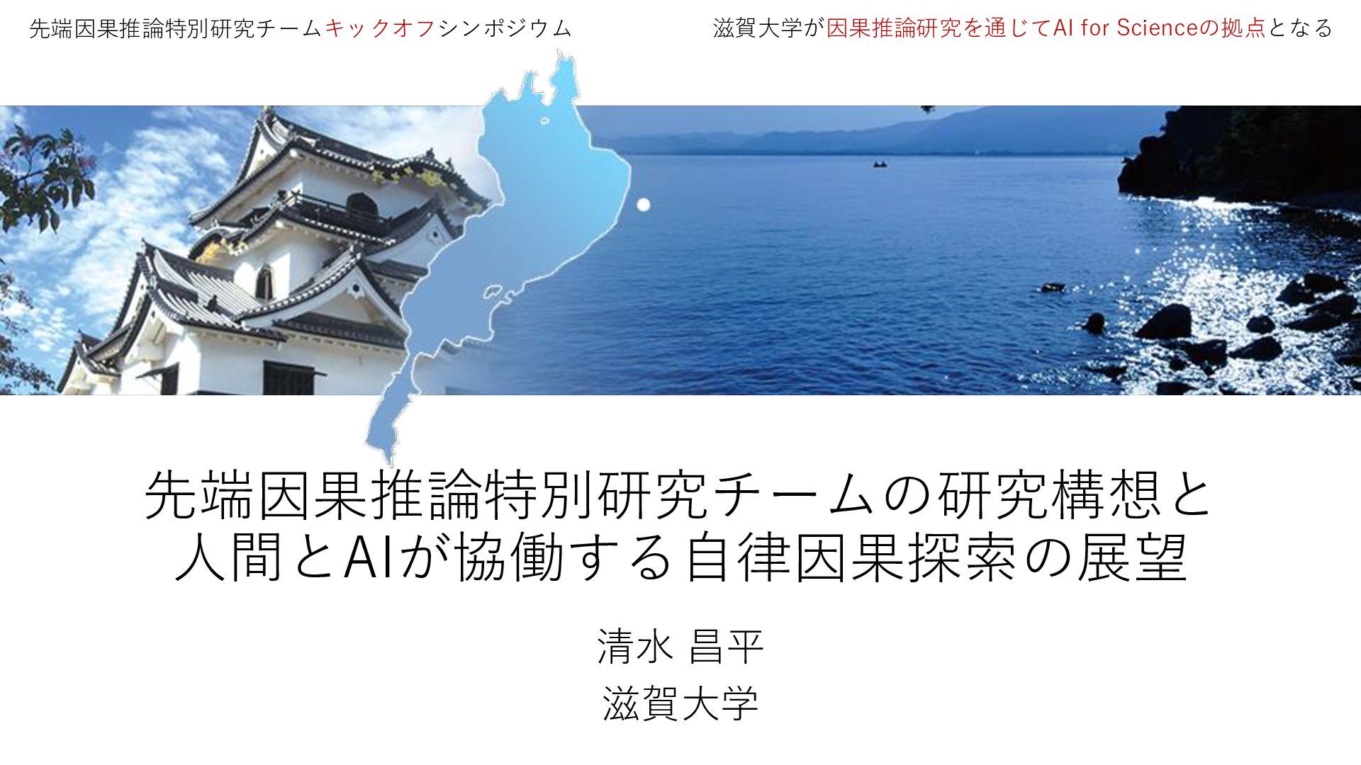 先端因果推論特別研究チームの研究構想と 人間とAIが協働する自律因果探索の展望 清水 昌平 滋賀大学 先端因果推論特別研究チームキックオフシンポジウム 滋賀大学が因果推論研究を通じてAI for Scienceの拠点となる