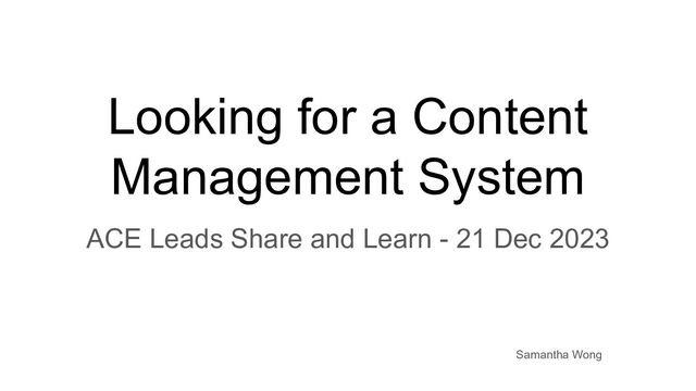 This was first shared at ACE Leads Share and Learn - 21 Dec 2023.