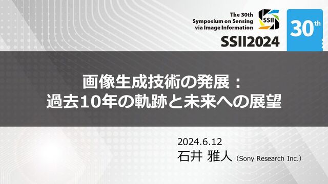 画像生成技術の発展: 過去10年の軌跡と未来への展望 2024.6.12 石井 雅人(Sony Research Inc.)