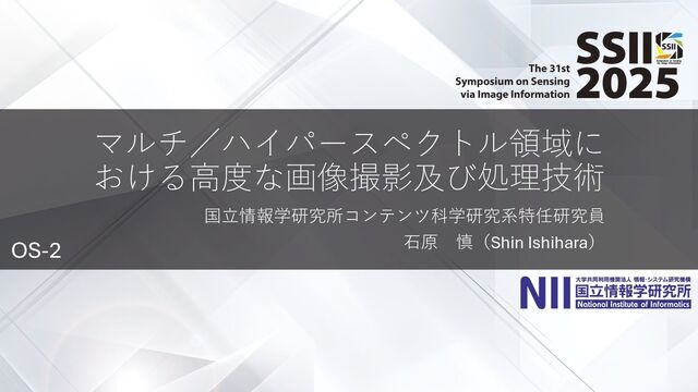 マルチ/ハイパースペクトル領域に おける⾼度な画像撮影及び処理技術 国⽴情報学研究所コンテンツ科学研究系特任研究員 ⽯原 慎(Shin Ishihara) OS-2