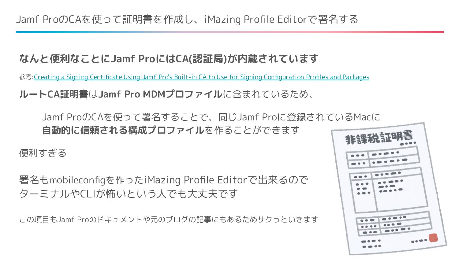 https://learn.jamf.com/bundle/technical-articles/page/Creating_a_Signing_Certificate_Using_Jamf_Pros_Built-in_CA_to_Use_for_Signing_Configuration_Profiles_and_Packages.html