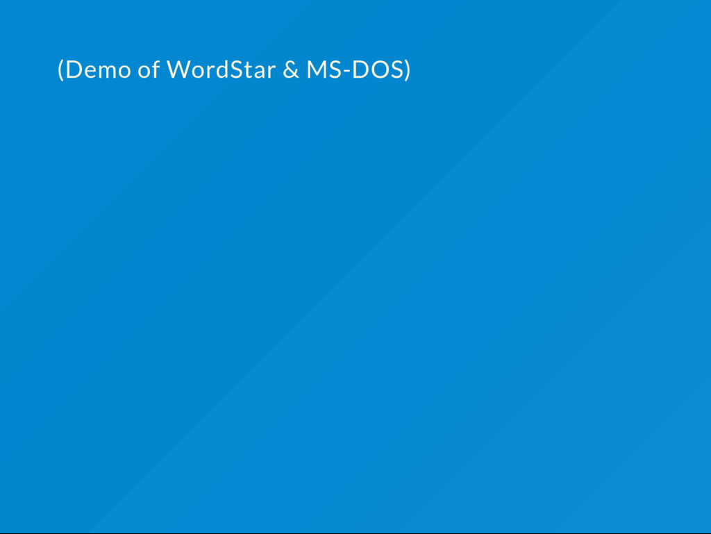 he does all his writing on an obsolete disk operating system (DOS) computer - because it does not correct his spelling. I actually have two computers. I have the computer that I browse the internet with, that I get my email on and I do my taxes on. Then I have my writing computer, which is a DOS machine not connected to the internet. Remember DOS? I use WordStar 4.0 as my word-processing system. “ “ BBC article dated 14th May 2014, http://www.bbc.com/news/technology-27407502